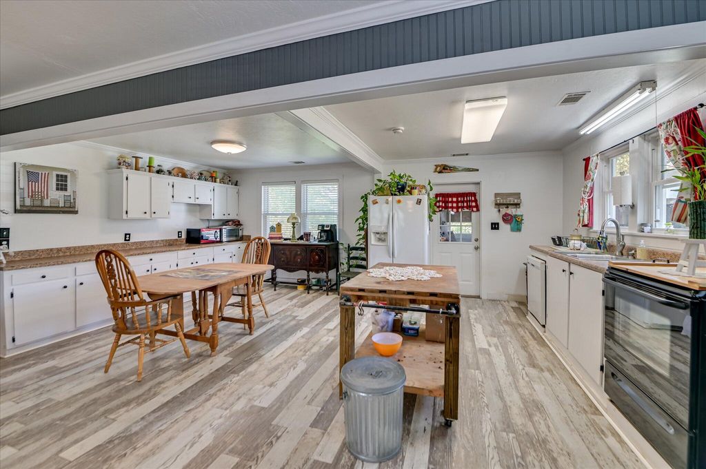 Country Living at its best can be found in this home which features a spacious living room and kitchen which are perfect for entertaining guests or spending quality time with family. The master bedroom features a large walk-in closet. Two additional bedrooms provide plenty of space for guests or a home office with one of them offering its own out entry door from outside. Outside, the property boasts a large shed with plenty of storage space for all your outdoor equipment and tools. The expansive yard is perfect for gardening or hosting outdoor gatherings. The peaceful surroundings provide the perfect escape from the hustle and bustle of city life. Don't miss your chance to experience the beauty and tranquility of farmhouse living in this charming home. Schedule a showing today and make this your own private oasis!