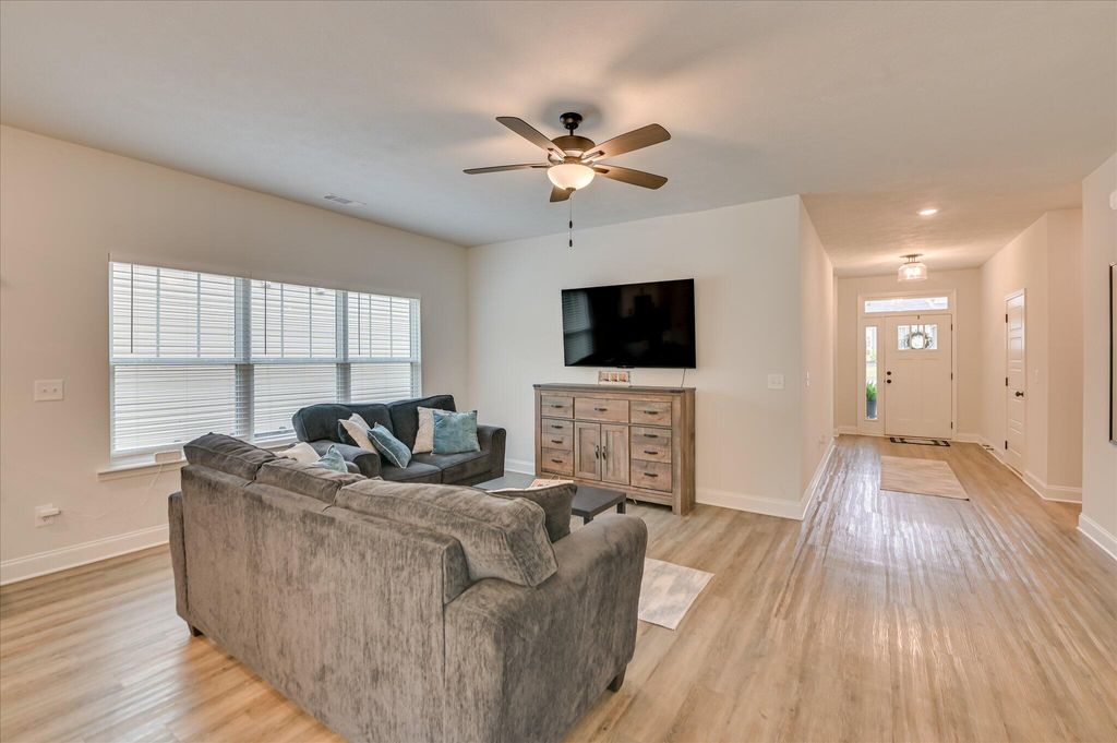 Welcome to this move-in ready 2024 ranch home in a quaint Trenton neighborhood! Offering 4 bedrooms and 2 full baths, this home features an open-concept layout that makes everyday living and entertaining easy. The split bedroom floor plan provides privacy, with the owner's suite tucked away from the secondary bedrooms. The kitchen flows seamlessly into the dining and living areas, creating a bright and airy space at the heart of the home. The primary suite includes a spacious bathroom and walk-in closet, while the additional bedrooms offer plenty of room for family, guests, or a home office. Set on a generous yard, you'll have space for outdoor living, gardening, or play. Built in 2024, everything is fresh, modern, and low-maintenance"”ready for you to simply move in and enjoy. If you're looking for new construction without the wait, this home is the perfect fit.