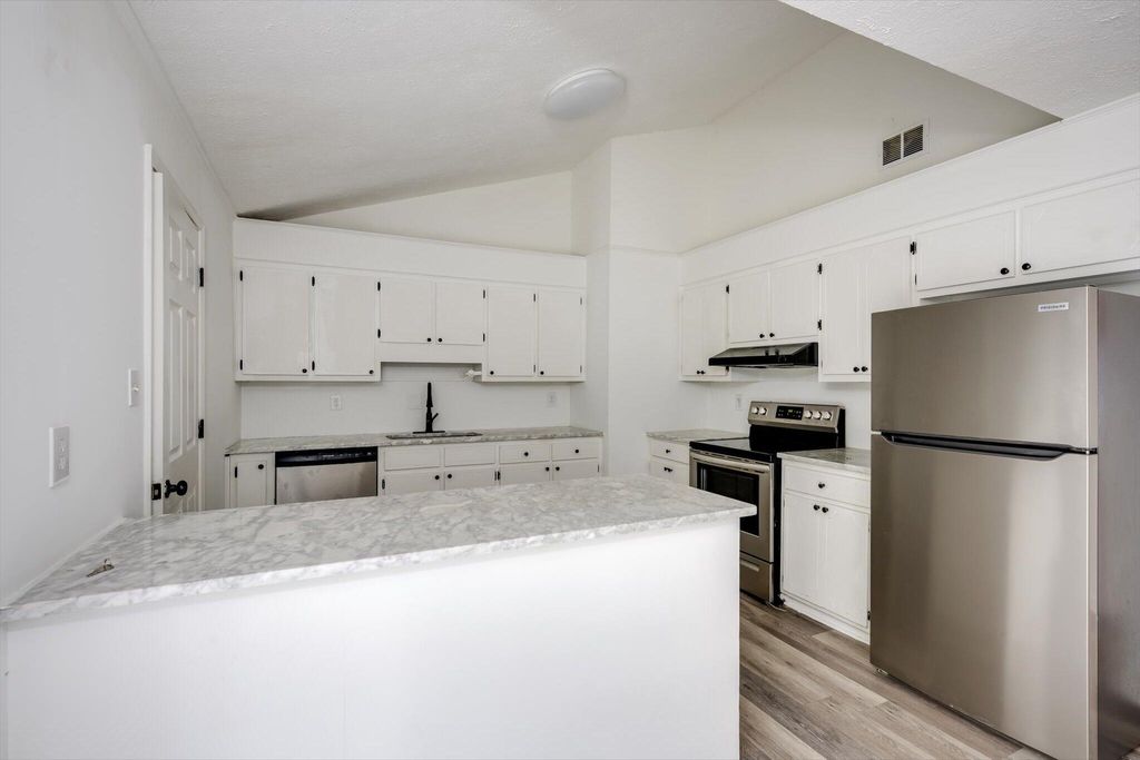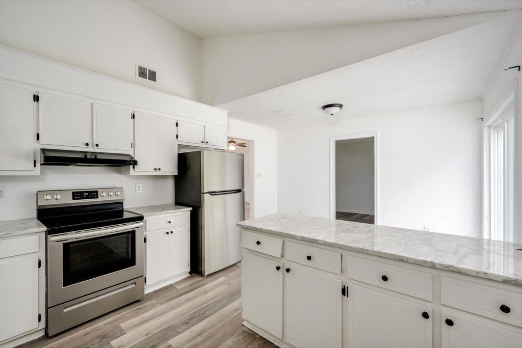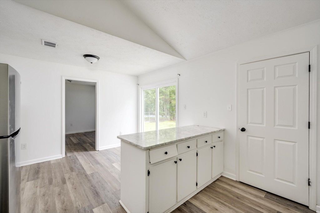 Nicely updated 4 Bedroom 2 Bath brick ranch on large flat lot. Luxury vinyl plank throughout! Vaulted living room with ceiling fan and cozy fireplace. Dine-in kitchen features granite countertops, breakfast nook, dining counter, and stainless steel appliances to include: refrigerator, dishwasher, and smooth top electric range. Connected room is perfect for formal dining or a recreation room. Owner's bedroom has remodeled en suite bath with low-maintenance tub surround and new fixtures. Three additional bedrooms have easy access to remodeled second bath with large granite vanity, ample storage, and new fixtures. Spacious laundry room rounds out the total package of this South Augusta home with convenient access to I-520.