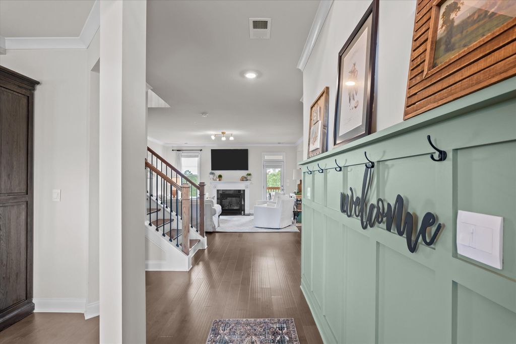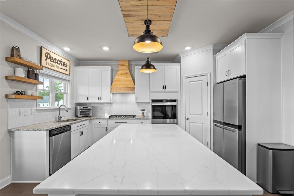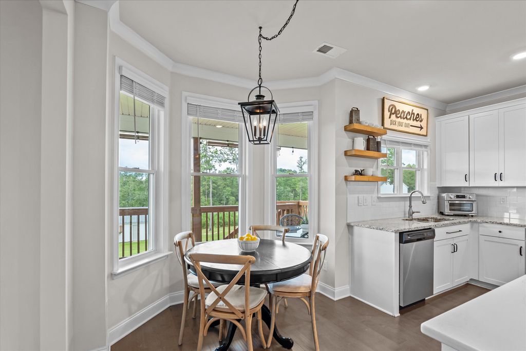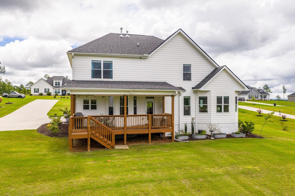 Discover the perfect blend of space, style, and convenience with this stunning 4-bedroom, 3.5-bath home set on 2 acres in North Augusta"”just minutes from I-20, shopping, and dining. Truly move-in ready, this home welcomes you with a lovely foyer accented by board and batten wainscoting that opens to the formal dining room, complete with bay windows and a coffered ceiling. The spacious great room features a gas fireplace, while the chef's kitchen offers stainless steel appliances, a gas cooktop, large island, decorative wood hood, corner pantry, and a sunny breakfast area with bay window overlooking the landscaped backyard. A half bath with beadboard trim and a large laundry room with utility sink and cabinetry add convenience. The owner's suite is located on the main floor, featuring a peaceful sitting area with backyard views, a spa-like bathroom with dual vanity framed by shiplap, walk-in shower, tile flooring, and a spacious walk-in closet. 9' ceilings on the main floor add to feeling of light and spacious living spaces. Hardwood floors flow throughout the main level, with hardwood stairs leading up to a versatile loft"”ideal for an office, gaming area, or library. Upstairs, you'll find three additional bedrooms, one with a private bath and the others connected by a Jack and Jill bathroom. Wide hallways upstairs add to the sense of openness. Thoughtful details are found throughout this home, from the trim work and mirrors to the lighting fixtures. Outdoor living is just as inviting, with a covered back patio featuring pull-down shades, a fire pit area with lighting, and a large, fully irrigated yard. The property also includes an attractive storage shed designed to match the home. Enjoy the beauty and privacy of acreage while still being close to all the conveniences of North Augusta.
