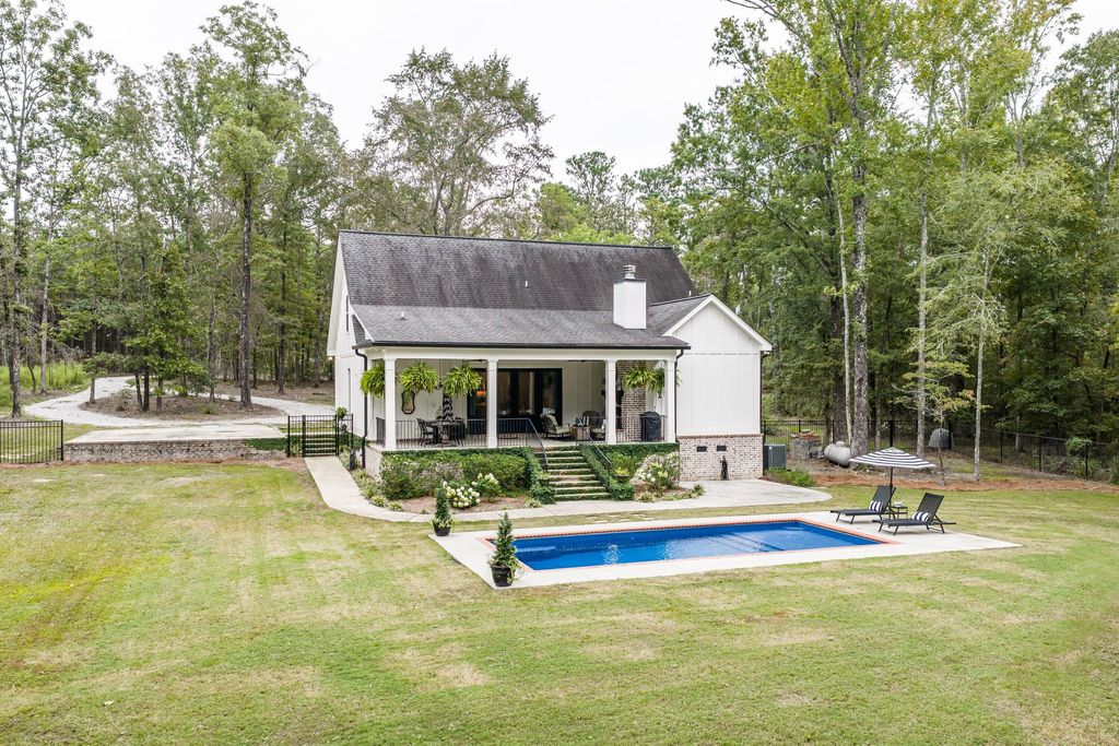 Discover this exceptional custom home set on 4.25 acres, just minutes from two public boat ramps"”perfect for both everyday living and weekend recreation. Featuring high-end finishes throughout, the home welcomes you with an expansive foyer, 10-foot ceilings, and detailed heavy trim work. The formal dining room seamlessly transitions into a gourmet kitchen, boasting marble countertops, a spacious island, stainless steel appliances, and a walk-in pantry. The kitchen opens seamlessly into the great room, featuring a gas fireplace, to create a comfortable yet elegant living space. Outdoor living is equally impressive, with a spacious rear porch featuring a wood-burning fireplace and hookups for an outdoor kitchen"”all overlooking the sparkling pool and fenced backyard. The owner's suite offers a private retreat, featuring a spa-like bath with a large walk-in shower and a double vanity. While the home currently offers two bedrooms and two bathrooms, the upstairs is framed with 9-foot ceilings and ready for your vision"”whether that's a third bedroom with a loft and full bath, or the option to add a fourth bedroom for even more space. A convenient service drive provides RV or trailer parking, making this home perfect for both everyday living and future customization. With its blend of style, functionality, and future potential, this property is truly one of a kind.