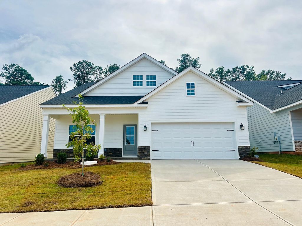 The Bondi Plan by Designer Homes of Georgia! This beautifully designed, 3-bedroom, 2-bathroom single-story home is situated in the highly sought-after Sanctuary subdivision in Aiken, SC. Set on a spacious lot that backs up to peaceful green space, this home combines charm, comfort, and thoughtful design. Step inside to an inviting open floor plan filled with natural light, custom trim work, and elegant details throughout. The living area features a cozy fireplace and flows seamlessly into a luxurious kitchen equipped with granite countertops, a stylish tile backsplash, and stainless steel appliances. Enjoy your private outdoor oasis with a fully landscaped backyard and a covered patio. Perfect for relaxing or entertaining. All bedrooms, including the spacious owner's suite, are conveniently located on the main level. The owner's suite features a stunning en-suite with dual vanities and a tiled walk-in shower. The Sanctuary neighborhood offers a lifestyle of ease and community, with sidewalks, streetlights, a large community garden, and a scenic walking trail. Located just minutes from Downtown Aiken, Bruce's Field, Hitchcock Woods, premier equestrian venues, shopping, and fine dining. Please note: Photos shown are of a previously built Bondi Plan. Home features, finishes, colors, and fixtures may vary. Buyer and buyer's agent to verify square footage and school zones.