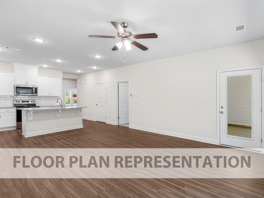 The Macon 2-Bedroom Townhome plan features spacious open living. The main floor features a secondary bedroom upon entry then flows into the open concept kitchen, cafe, and family room. This layout also includes a full guest bathroom and laundry room for added convenience. Rounding out this plan is the grand owners suite with a beautiful owners bath and large walk-in closet. This single-level plan is the perfect low-maintenance home for anyone looking for comfort and convenience. The Windsor community offers easy access to North Augusta, Downtown Augusta, Aiken, and Fort Gordon! Community amenities include community pool pavilion, activity park, pet park, playground, sidewalks, streetlights, green spaces, fishing pond and two landscaped entrances.