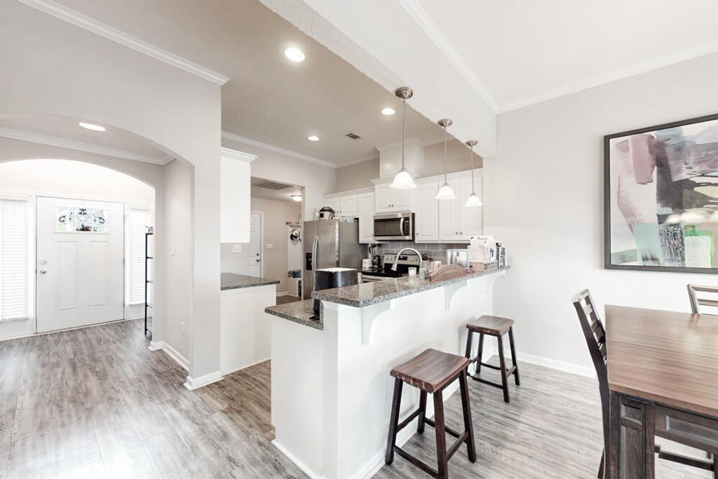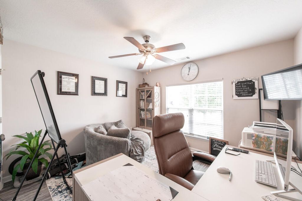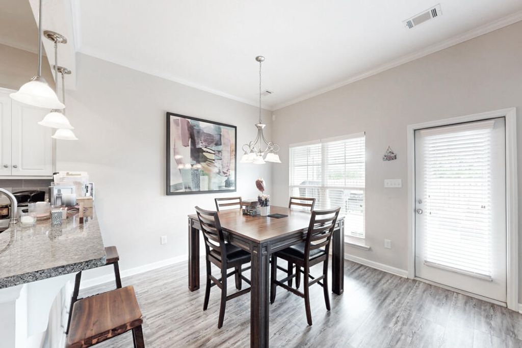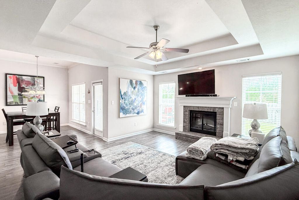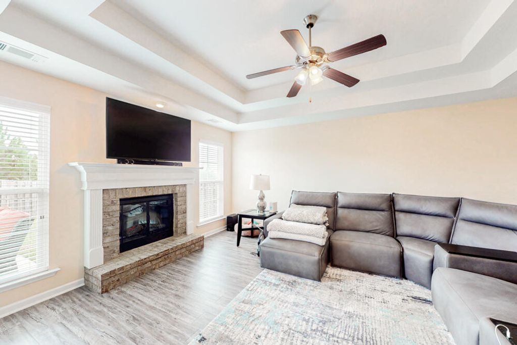 Move-in ready, all one level living in this 3-bedroom, 2-bath home! Enjoy the resort style neighborhood pool! This home welcomes you with a foyer entrance and LVP flooring with crown molding that carries throughout the main living areas! The living room has a double tray ceiling, ceiling fan, and a beautiful fireplace! The kitchen features granite countertops, a tiled backsplash, pantry, breakfast bar, range, built-in microwave, and dishwasher, all perfect for everyday living and entertaining! A separate dining room adds flex space for meals and gatherings! The generous owners suite is on the main level and showcases a double tray ceiling, ceiling fan, his and her closets, and a bathroom with a double sink vanity, framed mirrors, a soaking tub with tile surround, and a separate shower! Two additional spacious guest bedrooms share a nearby full bathroom, ensuring comfort and convenience for family or guests! A laundry room adds practical daily ease! Outdoor living is a highlight with a covered porch and an extended patio overlooking a privacy-fenced backyard! An awesome mudbench just off the 2-car garage makes everyday routines a breeze! Great location with easy access to Bridgestone, SRS, Fort Gordon, and more! This is a thoughtfully designed, move-in ready home!