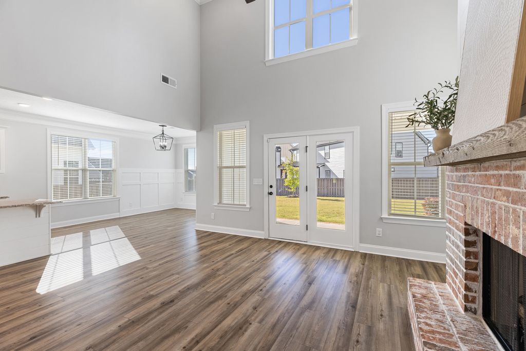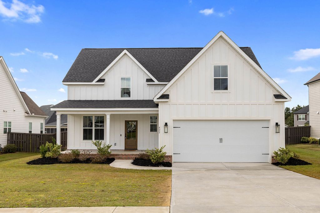 Welcome to Highland Lakes in desirable Evans, GA! This 4BR/3.5BA home offers over 2,800 sq ft of open, modern living. The gourmet kitchen features a massive island, shaker cabinets, tile backsplash, 36'' gas range, and built-in microwave. The 2-story great room showcases a brick & shiplap fireplace and flows to the main-level owner's suite with tray ceiling, dual walk-in closets, and spa bath with granite vanities, soaking tub, and tiled shower. Upstairs includes 3 spacious bedrooms and 2 full baths. One of the bedrooms is oversized (12'x21') and could easily serve as a game room or flex space. Enjoy LVP floors, custom blinds, and a covered patio overlooking a fenced backyard. The neighborhood has a community pool, firepits, and is zoned for top Columbia County schools!