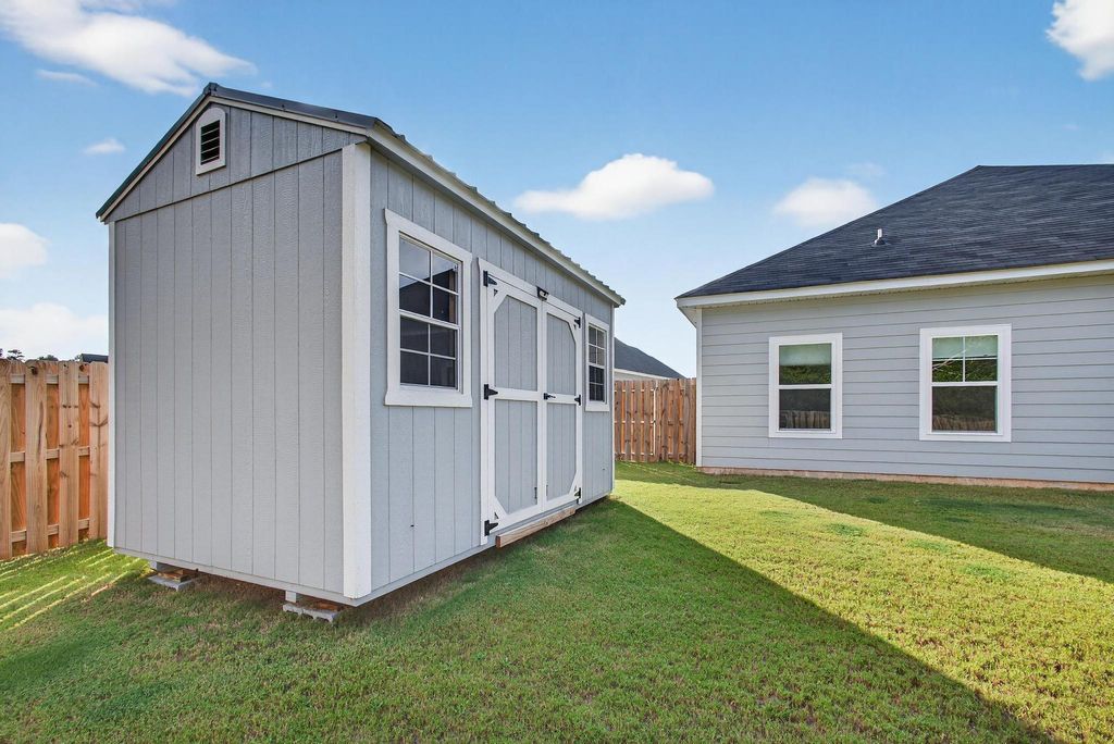 Better Than New Construction! Welcome to The Newport by PlanDwell Homes - a stunning one-story home that was just completed in 2024 and thoughtfully upgraded by its current owners. This move-in-ready gem offers the charm of a brand-new build plus the benefit of custom enhancements and a transferable 10-year structural builder warranty! Inside, the owners have added a gorgeous coffee bar in the kitchen, extra cabinetry, two-tier pull-out shelves in the lower cabinets, and a privacy window in the bathroom. Additional storage has been created with new cabinetry in the guest bath, and a spacious backyard shed provides room for tools, toys, or hobbies. This home features 3 bedrooms and 2 full bathrooms with an open floor plan. The great room includes an electric fireplace and flows seamlessly to the kitchen and formal dining area. The kitchen is a showstopper with granite countertops, tile backsplash, stainless steel appliances, and plenty of storage. The owner's suite is a retreat, complete with a double vanity, walk-in closet, and tiled walk-in shower. Relax outdoors in the screened patio and enjoy your private backyard. Located in The Sanctuary, you'll love the neighborhood amenities including sidewalks, a community garden, walking trails, and streetlights, all just minutes from downtown Aiken!