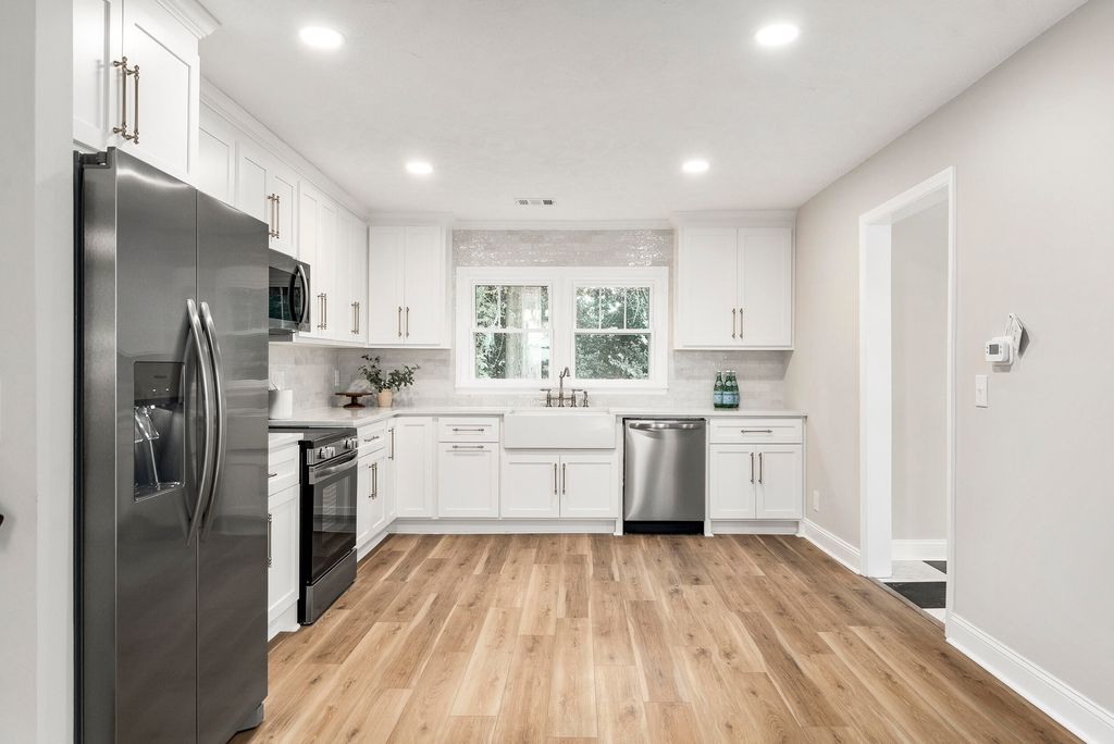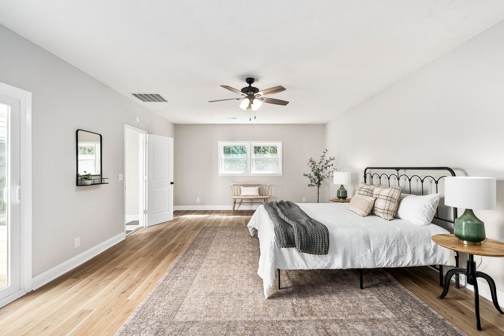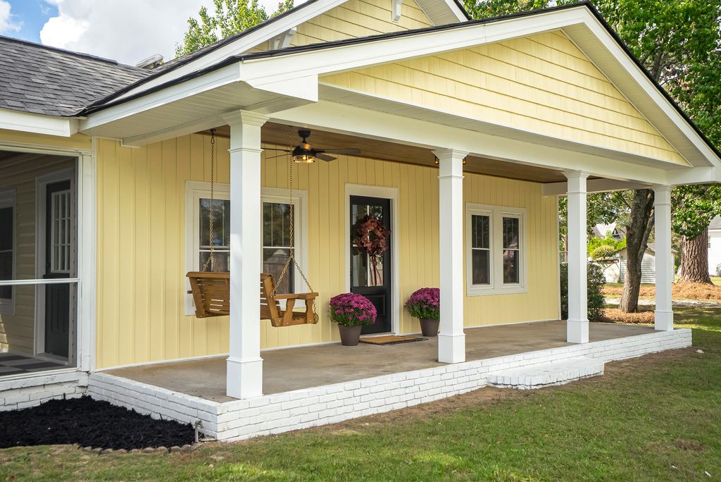 Just one street over from downtown Harlem, this fully renovated 4-bedroom, 3-bath home blends small-town charm with thoughtful modern upgrades "” creating a space that feels both timeless and fresh. From the moment you arrive, the cheerful butter-yellow exterior, new siding, and inviting front porch swing set the tone. It's the kind of spot that practically calls for slow mornings with a warm drink and good company. Just a short stroll away, you can grab a banana bread iced latte at Harlem Java House or swing by Main Street for local sweets and community events "” all the perks of downtown living, tucked into a quiet residential street. Step inside to find a bright, open interior with fresh paint, brand-new windows, and durable LVP + LVT flooring throughout. The kitchen has been completely reimagined with new cabinetry, a farmhouse-style sink, quartz countertops, and stainless steel appliances "” perfect for both everyday living and hosting. The primary suite is spacious and thoughtfully designed, featuring French doors leading into a newly renovated bathroom, where a glass shower door will soon complete the space. Multiple access points from both the kitchen and primary suite lead to the back patio, creating an easy indoor-outdoor flow for entertaining. One of the most charming features of this home is the screened-in side porch, complete with checkerboard LVT flooring "” a cozy, stylish spot for morning coffee or unwinding in the evenings. With a new roof, new windows, and updates from top to bottom, this home offers the perfect mix of character and peace of mind. And being just steps away from the heart of Harlem means you can enjoy small-town living "” from local coffee shops and seasonal events to evening walks through the neighborhood "” all right outside your door.