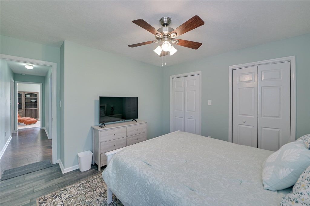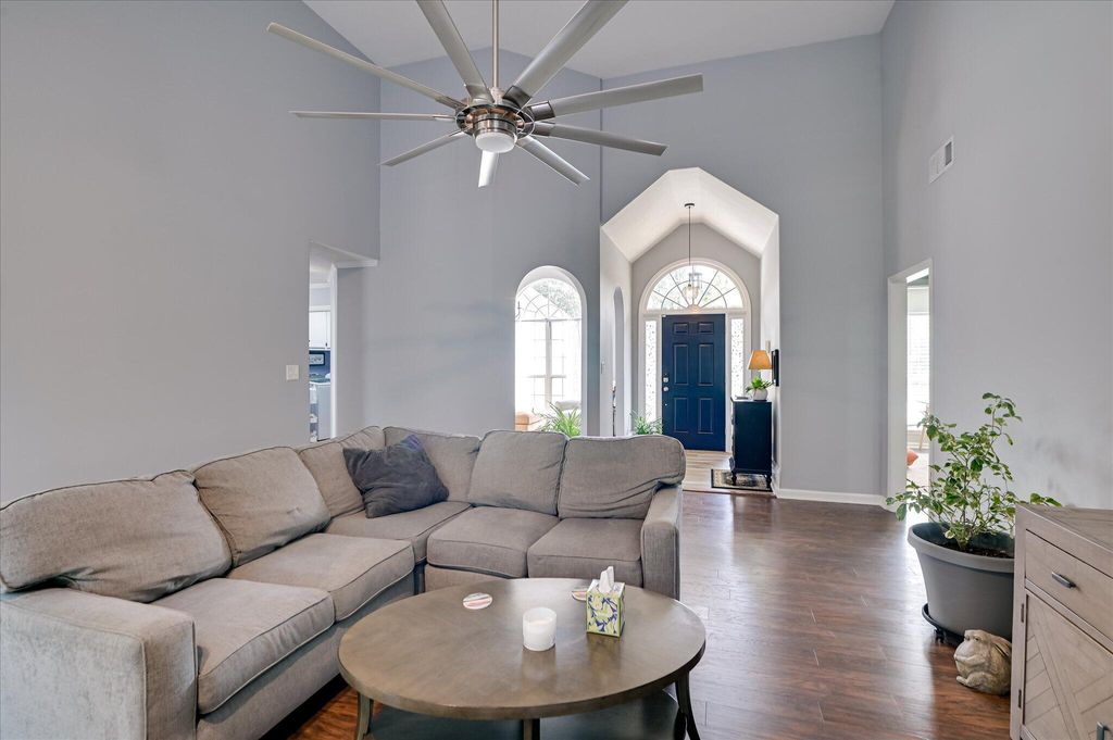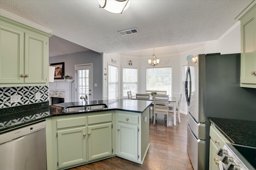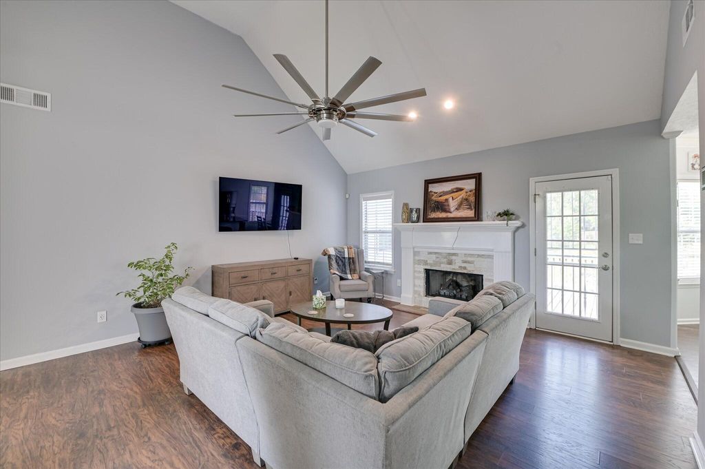 half-acre cul-de-sac lot - Spacious 4 Bedroom, 2 Bath 1 Story Ranch Enjoy comfortable single-level living in this beautifully maintained home featuring a vaulted-ceiling living room with fireplace, kitchen with granite countertops, stainless steel appliances, and smooth-top range. The owner's suite offers a trey ceiling, custom tile shower, his and her vanities, and a large walk-in closet. Relax outdoors on the large deck overlooking a private backyard with fruit trees including fig and lemon. Additional features include luxury vinyl flooring, a convenient laundry room, and a two-car garage. Zoned for River Ridge Elementary, Riverside Middle, and Greenbrier High