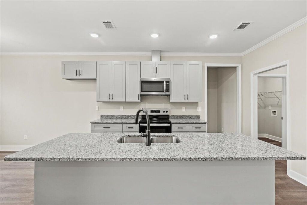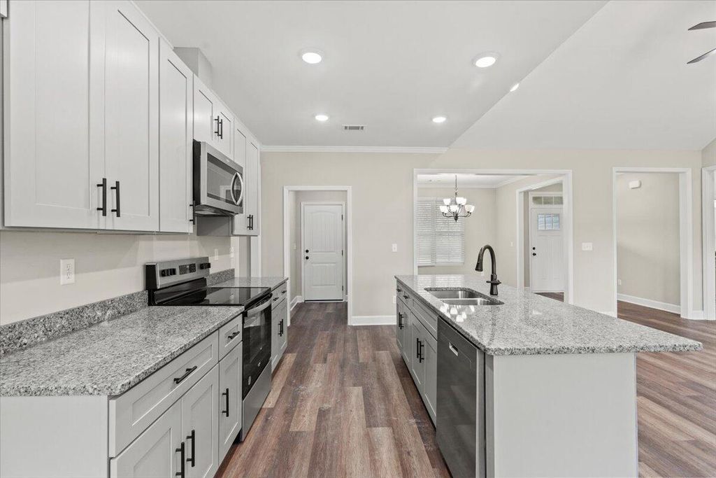 Welcome to your dream home! This stunning brand-new construction corner lot ranch offers modern living at its finest, with 4 spacious bedrooms, 2 1/2 luxurious bathrooms, and approximately 1,838 square feet of elegant living space. Step inside and be greeted by luxury vinyl flooring that flows seamlessly throughout the home, while plush carpeting in the bedrooms provides ultimate comfort. The heart of the home is the expansive kitchen, featuring an oversized island, exquisite upgraded granite countertops, and ample cabinetry, making it perfect for both everyday living and entertaining. The primary bedroom suite is a true retreat, boasting a garden tub and a beautifully tiled shower, creating a spa-like experience right at home. Situated on a generous 0.47-acre lot, there is plenty of room for outdoor activities, gardening, or simply relaxing in your private oasis. Don't miss the opportunity to make this exceptional property your forever home. Contact us today to schedule a viewing and experience the perfect blend of luxury and comfort in this stunning new construction!