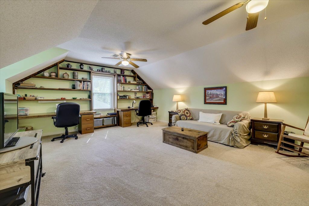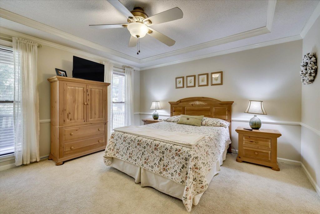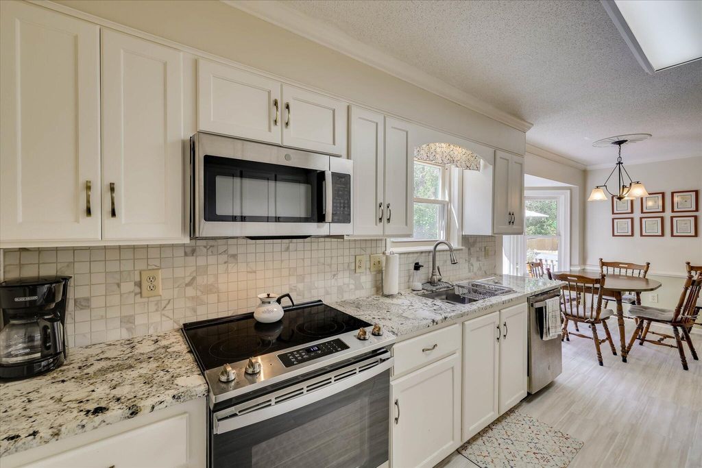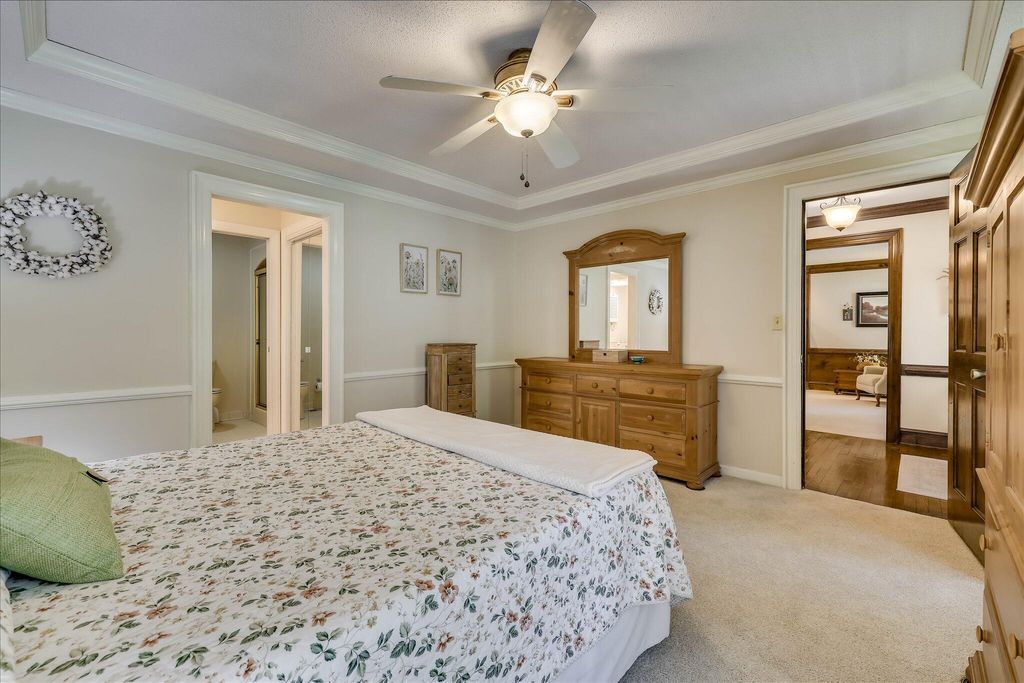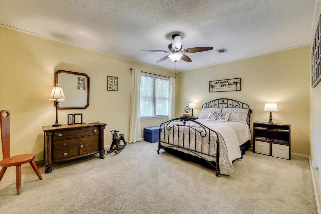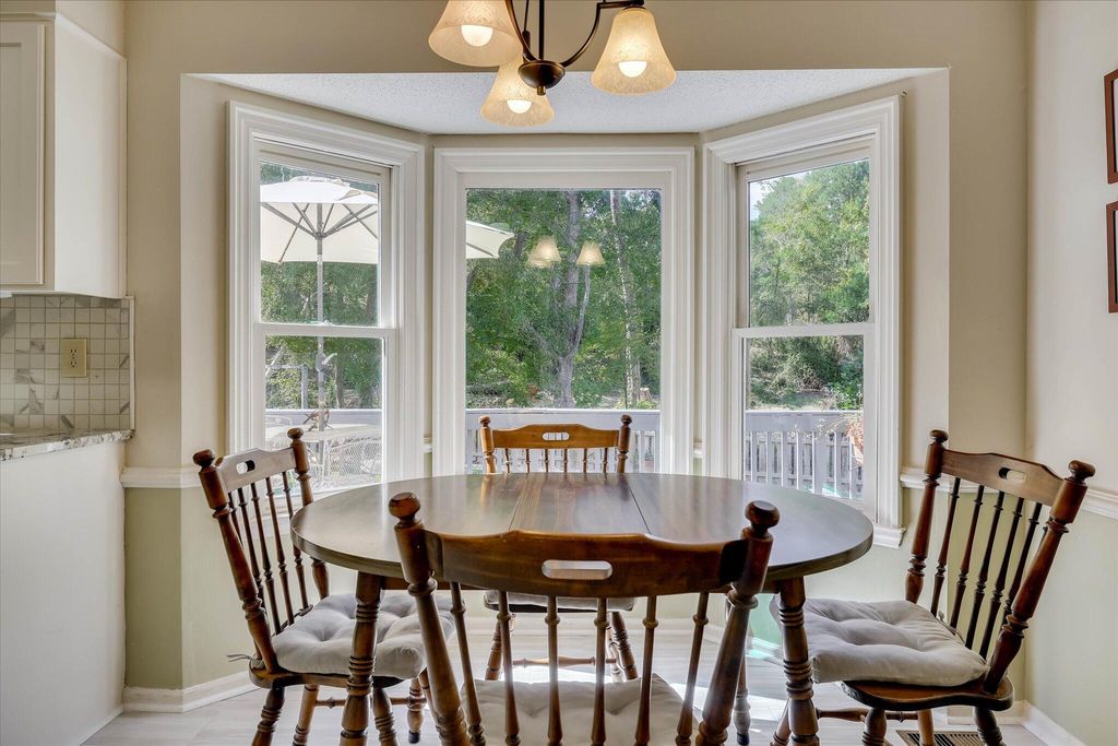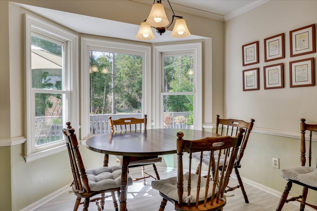 Southern Charm at its finest. Rocking chair front porch. Foyer leads to a 21 x 13 Great room with heady woodwork and gas log fireplace with brick hearth. Dining room with hardwood flooring, and amazing views thru double doors to rear yard. Kitchen features new flooring, granite countertops, tiled backsplash, and SS appliances and bay window for morning coffee while watching the deer. Owner Suite on main level with soaker tub and separate shower. Upstairs you'll find 3 more spacious bedrooms and a HUGE 21 x 15 bonus room and another full bath with double vanities. Exterior features a side entry garage, large rear patio for entertaining, an open flat rear yard perfect for kids' structures, and great views of Rae's Creek. Upgrades include new roof only a few months old! Both up and down HVAC systems replaced spring of 2025! And all new carpet installed summer of 2025! And you're just a short 2 house walk to the community pool!!
