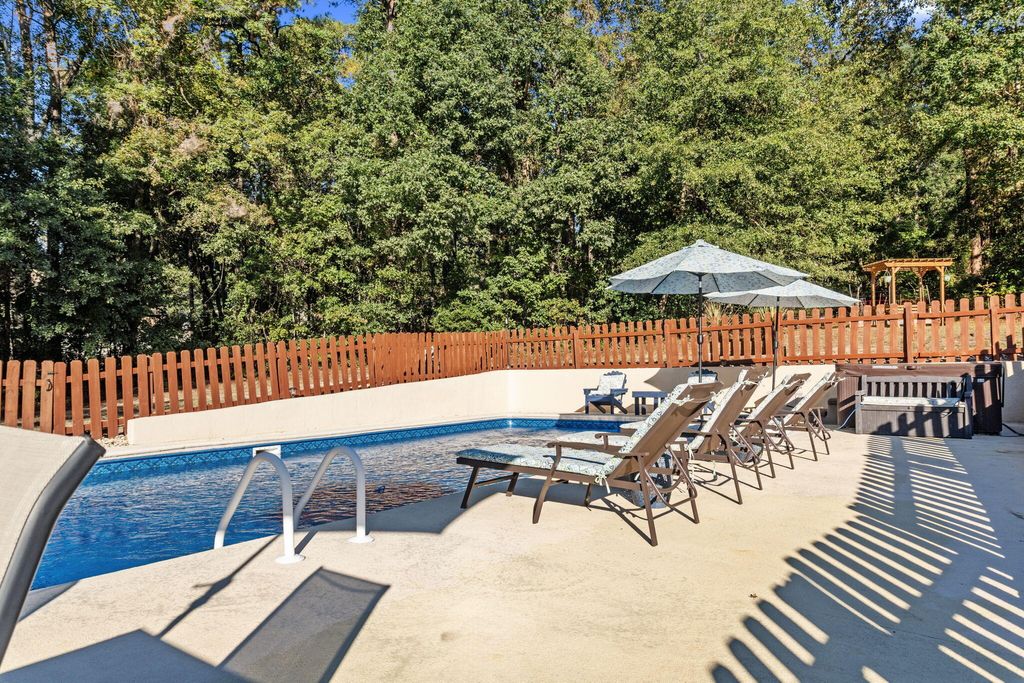 #Stunning A stunning, traditional two-story brick home offering the perfect blend of timeless charm and modern updates. Situated on a spacious lot, this home features a new 30-year architectural shingle roof and a classic 20x4 rocking chair front porch that invites you to relax and enjoy Southern living. Step inside the foyer and you'll be greeted by gleaming true hardwood floors that flow throughout the entire main level. The fully remodeled kitchen is a chef's dream, featuring a smooth electric cooktop, quartz countertops, tiled backsplash, an island for prep space, and an abundance of cabinets, all illuminated by recessed lighting. The great room boasts elegant judges paneling, a cozy wood-burning fireplace with wood surround and brick hearth that is perfect for gatherings or quiet evenings in. A guest bedroom on the main level includes its own private ensuite bath with a walk-in shower, cultured marble vanity, and access to the screened rear patio. Formal dining and living rooms both feature beautiful crown molding, and there is also a convenient half bath on the main floor. Upstairs, you'll find four generously sized bedrooms, all with plush carpet. The spacious owner's suite includes partially vaulted ceilings, dual closets, and a luxurious bathroom with new ceramic tile flooring, updated cabinets, a garden tub, separate shower, and elegant brushed gold finishes. Two of the secondary bedrooms are connected by a Jack-and-Jill bath, while the upstairs laundry room adds convenience. There's even a conditioned storage area ideal for a gym or flex space. Enjoy outdoor living with a screened patio that leads to an open-air area, perfect for grilling or entertaining, which flows right out to your private in-ground pool complete with a diving board and hot tub jacuzzi. The home also features a 3-car attached garage and an additional area ideal for a workshop or hobby space. This home has it all! It has the space, style, and the features you've been looking for. Don't miss your opportunity to make this beautiful property yours!