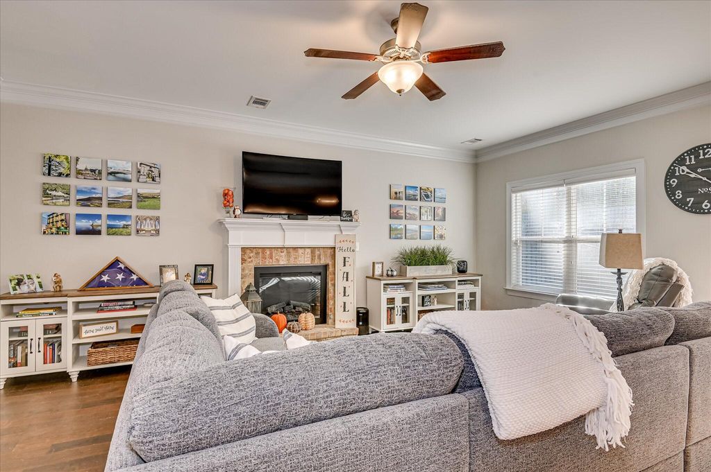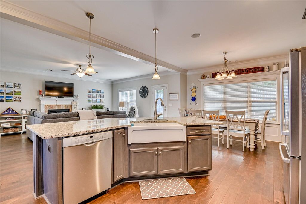 This beautiful property offers a spacious kitchen with a farmhouse sink, center island, wall oven, wine rack with glass holders. Enjoy wood flooring in the main living areas, detailed moldings, and a formal dining room perfect for entertaining. The main-level owner's suite features a tray ceiling, granite double vanity, tiled walk-in shower, and a large closet with direct access to the laundry room. Upstairs offers four additional bedrooms, each with a walk-in closet, plus two full baths, providing plenty of space for family and guests. Step outside to your backyard retreat with a built-in outdoor kitchen, mini refrigerator, and an extended L-shaped counter ideal for entertaining. The yard is fully fenced for added peace of mind. *Seller is offering a carpet allowance with acceptable offer! **Home may qualify for VA assumable loan ask for details!