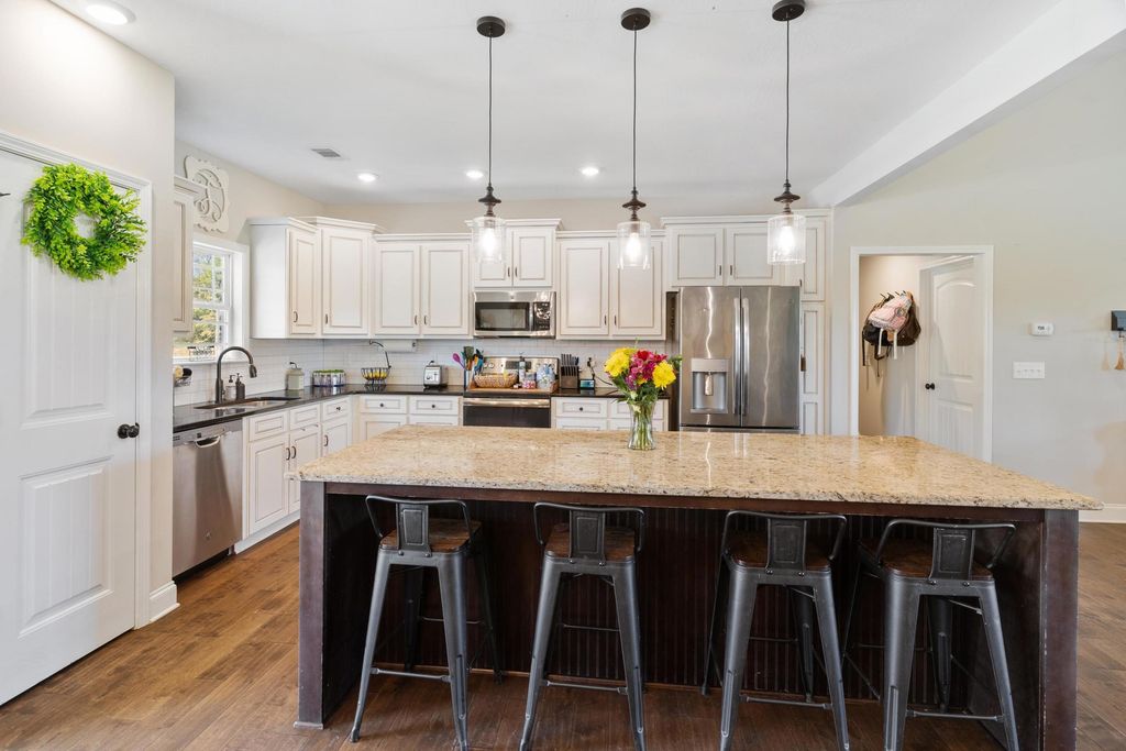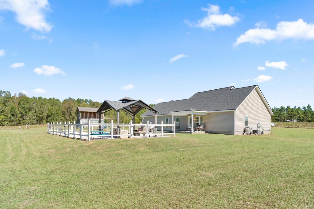 Peaceful Country Living on 5+ Acres Near Waynesboro, GA. Escape to the quiet side of life in this beautiful 4-bedroom, 2-bath home set on 5.3 acres of open countryside just south of Waynesboro. With easy access to Highway 25, you'll enjoy the best of both worlds "” privacy and convenience. Step inside to an inviting open-concept floor plan featuring vaulted ceilings and sweeping views of the surrounding landscape. The main level offers three spacious bedrooms and two full baths, while the loft-style fourth bedroom provides a flexible space perfect for a home office, playroom, or fitness area. Split bedroom plan creates lots of privacy for the master suite. Out back, relax and unwind beside the in-ground pool with a covered gazebo sitting area"”the ideal spot for entertaining or watching incredible sunsets and night skies. A double garage and a partially finished workshop with loft add functionality and room to grow. If you've been dreaming of wide-open spaces, starry nights, and room to breathe, this Burke County retreat delivers it all.
