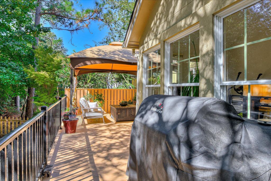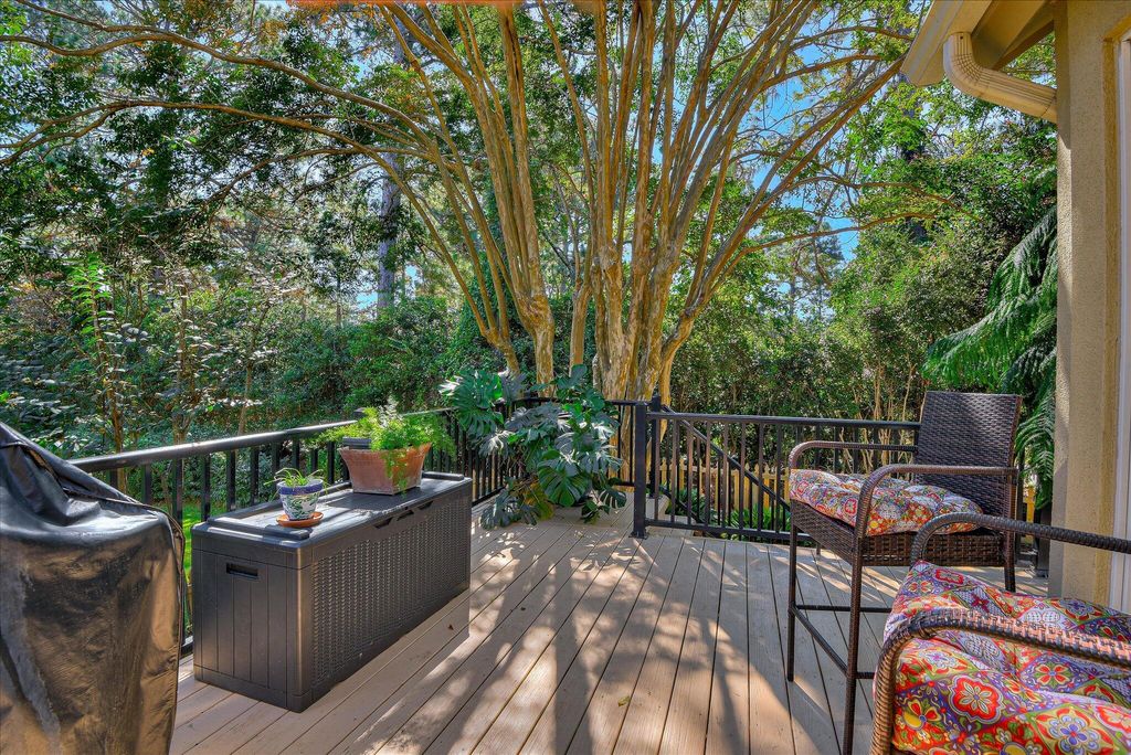 Renovated, refreshed, and ready to impress his light-filled home in the gated Woodside community feels like a private tropical retreat. With just over 2,100 square feet, this updated home offers spacious rooms, excellent storage, and no carpet throughout. The first-floor owner's suite features a walk-in shower and opens directly to a covered area on the wraparound deck"”perfect for relaxing or entertaining. The large sunroom, surrounded by windows, overlooks a backyard that feels like an oasis. Enjoy views of the pond, mature trees, and a peaceful walking path that winds through the landscape. Whether you're sipping coffee in the morning or unwinding in the evening, every space invites you to slow down and take in the view. Woodside offers resort-style amenities including a championship golf course, clubhouse, tennis courts, swimming pool, and scenic walking trails all within a secure, gated setting. And under the home is a crawl space tall enough to walk in and is perfect for additional storage and ease of reaching utilities. Move-in ready, this home is ideal for year-round living or a lock-and-leave getaway. Easy to love, easy to maintain, and impossible to forget, come experience life in Woodside.