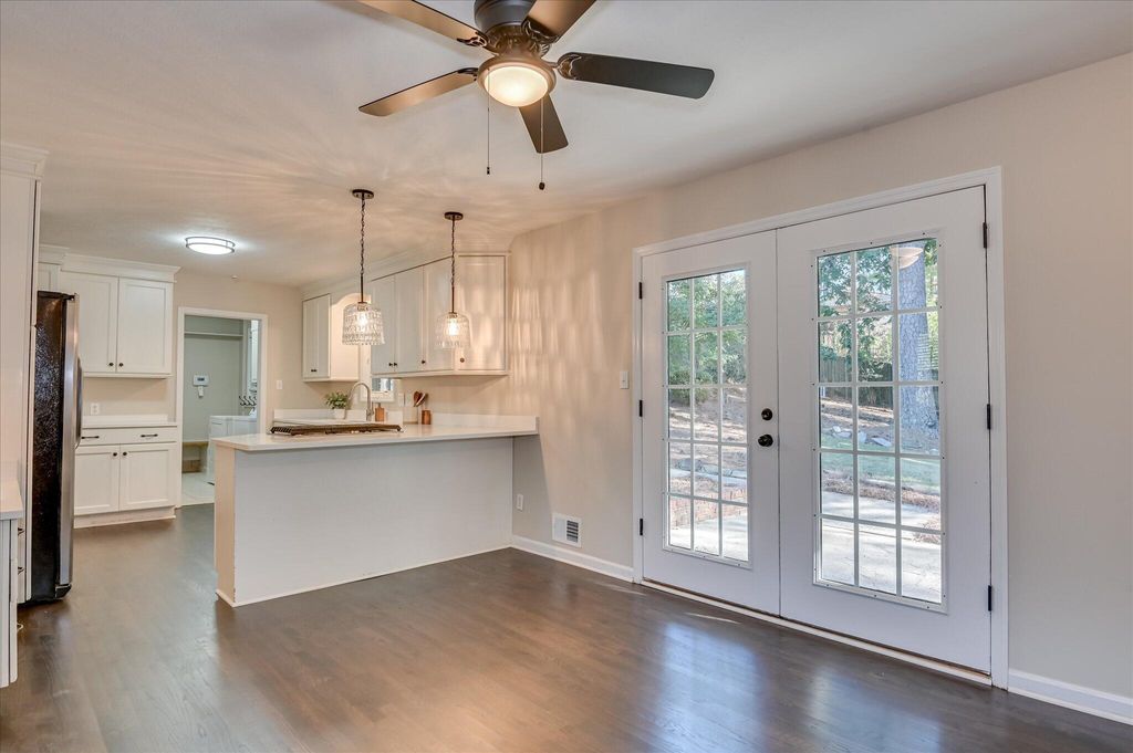 Beautifully-updated Brick Ranch in Brynwood! This inviting, 3BD/2BA home offers 1,780 sq ft of comfort and charm in one of Augusta's most convenient spots. Enjoy a NEW ROOF, refinished hardwood floors throughout, fresh interior and exterior paint, updated lighting and ceiling fans, fresh landscaping, and an encapsulated crawl space with French drain and dehumidifier. HVAC is just 5 years old. Washer and dryer stay too! You'll love the updated Andersen windows, tankless water heater, and a host of thoughtful upgrades throughout. The foyer and formal living and dining rooms feel warm and inviting, while the kitchen balances style and function beautifully. It features quartz countertops, nearly-new stainless appliances (5-burner gas cooktop, wall oven and microwave, dishwasher, refrigerator), a built-in desk, and bar seating that opens to the family room. French doors lead to the back patio, and custom built-ins make the space as practical as it is charming. The bedrooms are spacious and comfortable, and both bathrooms feel like retreats with heated tile floors, updated lighting and mirrors, and double sink vanities. The Primary ensuite features a walk-in tile shower. Outside, enjoy your private backyard and patio, and take advantage of the walk-out crawl space for storage or as a workshop. This home is an amazing find in an established community with a Pool and Racquet Club, all a short drive to the Augusta National Golf Club, shopping, restaurants, the medical district, and downtown!
