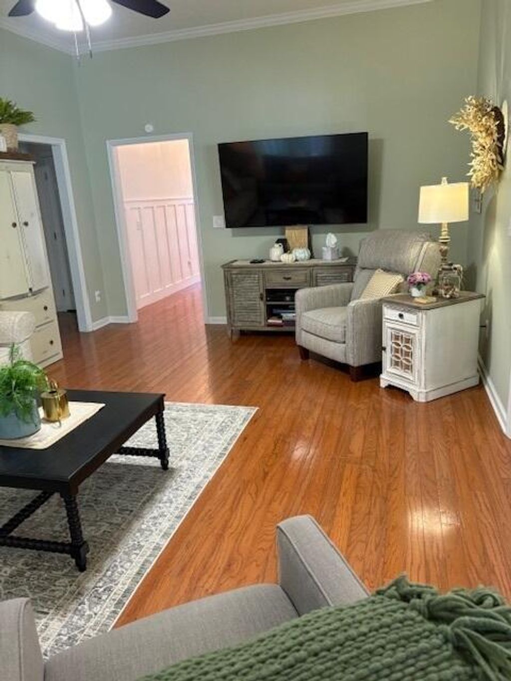 Like new one-story townhome in The Village at Bergen Place. 3 Bedrooms - 2 baths - large great room - vaulted ceiling - open floor plan to spacious kitchen - beautiful granite counter tops - stainless appliances - freshly painted throughout - wood floors in living area - dining & kitchen - new carpet in bedrooms. Back yard is a privacy fenced haven - retractable awning over patio - landscaped and ready for entertaining. New insulated windows throughout, new blinds, all new light fixtures, ceiling fans, microwave, master shower door, and cabinets built-in in master bath and dining area. All lawn care handled by HOA.