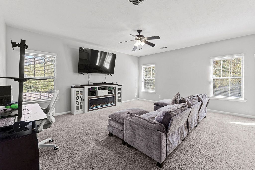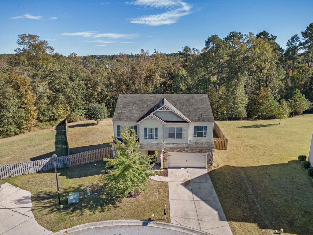 Discover your perfect home in an unbeatable Columbia County location, just minutes from I-20, Fort Gordon, SRS, Amazon, Augusta Medical District, and Club Car! This all-electric gem boasts the largest backyard in the community, backing up to the scenic Euchee Creek Trail System for outdoor adventures right at your doorstep. Situated on an extra-large, quiet cul-de-sac lot bordering a serene nature preserve, this home is within walking distance to top-rated Columbia County schools"”elementary, middle, and high school. Unwind on the charming rocking chair front porch or enjoy the fully landscaped yard, complete with a sprinkler system on all four sides, and take advantage of the extra-large driveway for ample parking. Inside, hand-scraped hardwood floors grace the foyer, leading to a versatile flex/study room ideal for a home office, playroom, or guest space, complete with a TV that stays with the home. The gourmet kitchen shines with new luxury vinyl plank (LVP) flooring for style and durability, a 12-inch bar top, custom cabinets, recessed and pendant LED lighting, and Whirlpool Silver Line appliances, including a dishwasher, smooth-top range, and microwave. Upgrades include energy-efficient LED lighting throughout and an energy-saving thermostat and radiant roof board to keep utility costs low. The living room features a 65-inch TV that stays with the property. Retreat to the second-floor master suite, complete with a cozy sitting area and a luxurious bath featuring a garden tub, separate glass-door shower, large walk-in closet, double vanities, framed mirror, and oil-rubbed bronze Delta faucets. All other bedrooms are upstairs and very large, offering ample space for family, guests, or hobbies. The guest bath also offers double sinks for added convenience. A very large laundry room upstairs adds practicality, with washer and dryer negotiable with a full-price offer, along with the refrigerator. This elegant home blends modern luxury with premium upgrades, a prime location, and unparalleled outdoor space. Schedule your tour today!