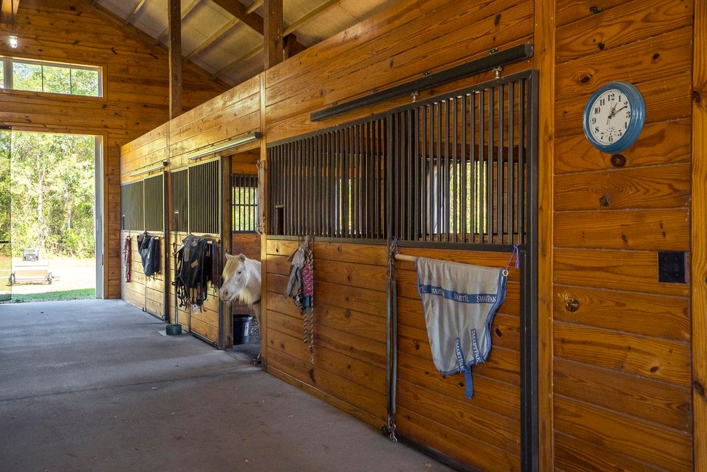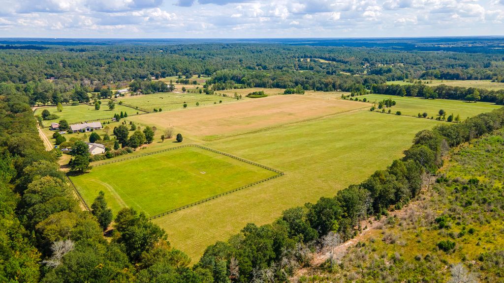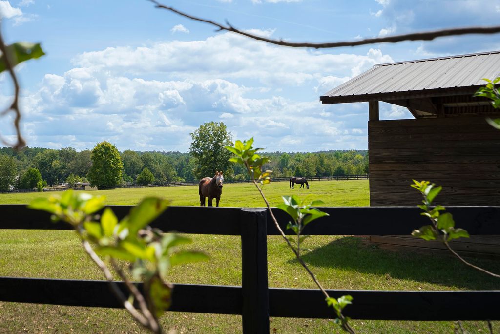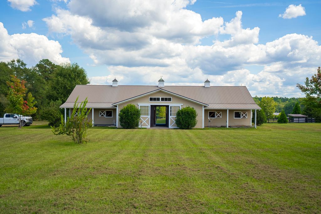 Bitters End Farm - Gorgeous custom home, pool and 7-stall barn are beautifully sited on approximately 48 acres of open fields and fenced paddocks with sweeping pastoral & ridgeline views to enjoy Aiken's equestrian lifestyle. The 4BR/4.5BA residence, built in 2010 by Mitch Johnson, offers quality craftsmanship, high ceilings, hardwood floors, two gas fireplaces and light-filled rooms. The Great Room impresses with vaulted ceilings, a heart pine-mantle fireplace and French doors opening to a gracious covered porch with incredible views overlooking the neighboring polo field. Around to the side of the home, you will be delighted by the privately landscaped saltwater pool with fields & barn beyond. Back inside, a gourmet kitchen features knotty pine cabinetry, leathered granite counters, Whirlpool appliances and a walk-in pantry. For more formal occasions, there is a lovely formal dining room while a separate home office / den offers beautiful built-ins and an inviting place to attend to business or correspondence. The primary suite is found on the main level and includes a sunlit, bay window sitting area, porch access, two walk-in closets, and spa bath with jetted tub and glass-enclosed shower. Three generous guest bedrooms, each with walk-in closets, are located upstairs; one bedroom features a private bath while the other two share a hall bath. A generous 2-room laundry / mud room is found off the back hall between the kitchen and the expansive 2-car garage with extensive built-in storage. Bitters End Farm is all about the equestrian lifestyle and outdoor living. Equestrian amenities include a Tim Zekany-custom built 7-stall barn with a climate-controlled tack room, indoor wash stall with both hot & cold water, a large hay/feed storage room, and a climate-controlled lounge/efficiency apartment with full bath/laundry room. The property offers several newly painted fenced paddocks with run-ins and new fencing. A separate custom-built equipment building offers two garage bays, concrete flooring, loft storage, and covered horse trailer parking to keep everything neat & tidy! During warmer weather, you can enjoy a refreshing afternoon swim in the in-ground saltwater pool (new liner in 2024) after working with your horses in the morning. Sip an iced tea on the back porch while watching polo during the season or a glass of wine while taking in a spectacular sunset. Wherever you are on this gorgeous property, the views are absolutely captivating! The property has been thoughtfully landscaped to maximize the views while providing privacy where needed. The property's structures are outfitted with SMART home security, lightning protection, metal roofs and supported by a 110 GPM well. Estancia Lane is located just minutes from the town of Wagener, SC and is an easy drive to equestrian venues and shopping in Aiken as well as the Columbia, SC airport. Bitters End Farm is truly an exceptional property, combining comfort, function & an idyllic, peaceful ambiance to which to welcome you and your horses home!