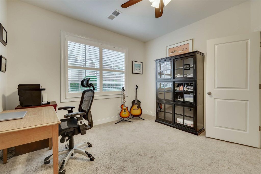 Step into timeless elegance and refined comfort in this beautifully designed home, thoughtfully crafted for both everyday living and effortless entertaining. At the heart of the house is the chef's kitchen, featuring a gas stove, custom cabinetry with pull-out shelving, and generous counter space"”ideal for cooking, gathering, and creating unforgettable meals. The open-concept layout flows seamlessly from the kitchen into a spacious great room and inviting dining area, creating a perfect space to host family and friends. The living room centers around a cozy gas fireplace and opens to a sun-drenched sunroom, filling the home with warmth and natural light. Step outside to the beautifully landscaped patio, expertly designed by a master gardener. Offering peaceful mornings and elegant evenings under the stars. The owner's suite on the main level is a private retreat, offering dual vanities, a soaking tub, a separate walk-in shower, and a spacious walk-in closet. An additional bedroom on the main floor enjoys abundant natural light and access to a second full bath, while a large flex room provides the ideal space for a home office, library, or sitting room. Upstairs, you'll find a generously sized third bedroom and an oversized 22X21 walk-in attic, offering exceptional storage and versatility. Located within the prestigious Mount Vintage community, residents enjoy an unmatched lifestyle with access to world-class amenities, including a 27-hole Championship Golf Course, six Har-Tru clay tennis courts, bocce ball, a Junior Olympic-size pool, a welcoming clubhouse, The Grille restaurant, and an active year-round social calendar. Additional highlights include custom plantation shutters, a tankless water heater, and a two-car garage, combining comfort, style, and practicality in one remarkable home.