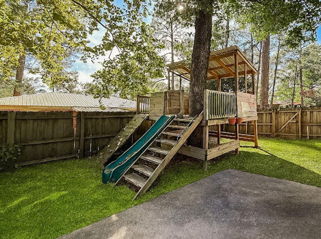 This charming two-level residence features a spacious family room with a brick fireplace, a beautifully updated kitchen with stainless steel appliances, and a large dining area ideal for family gatherings. The fenced backyard offers plenty of outdoor space and includes a unique treehouse. Perfect for a growing family or as an investment opportunity.
