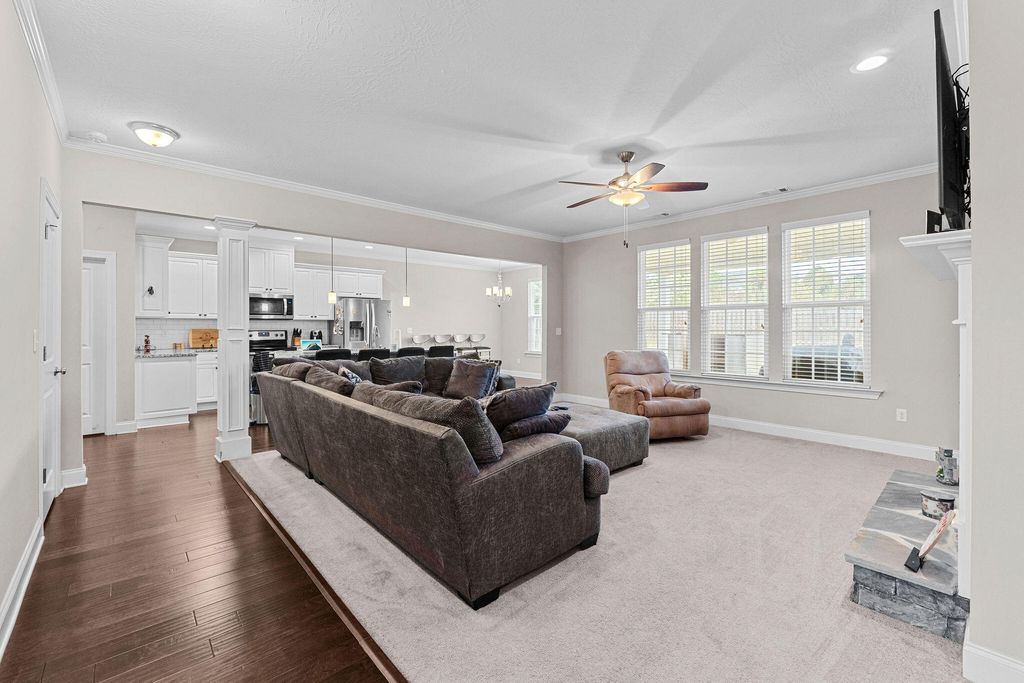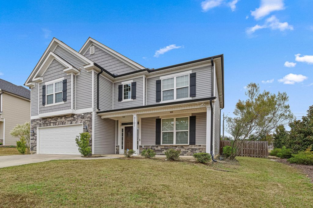 Greetings from 3101 Ridgefield Dr. This stunning 5 bedroom, 3 bathroom residence is beautifully situated on a spacious corner lot within the exclusive Caroleton community. At over 3300 square feet, this property is an ideal family home. Upon entering, you'll notice a versatile space suitable for formal dining, a home office, playroom, or its current use as a bar. The beautiful flowing hardwoods lead to an inviting open floor plan living room, perfect for entertaining and family time. The kitchen boasts a tile backsplash, a huge granite island with seating, and lovely granite countertops. A cozy breakfast nook completes this kitchen, sure to create lasting memories. Upstairs, you'll find a spacious bonus/media room, three bedrooms, and a welcoming primary bedroom with a large tub and walk-in closet. The fenced backyard and covered patio is perfect for families, offering ample space to play. Conveniently located in the heart of Grovetown, near Ft Gordon and I-20, this property is a must-see. Schedule your tour today!