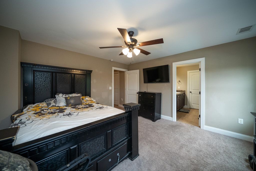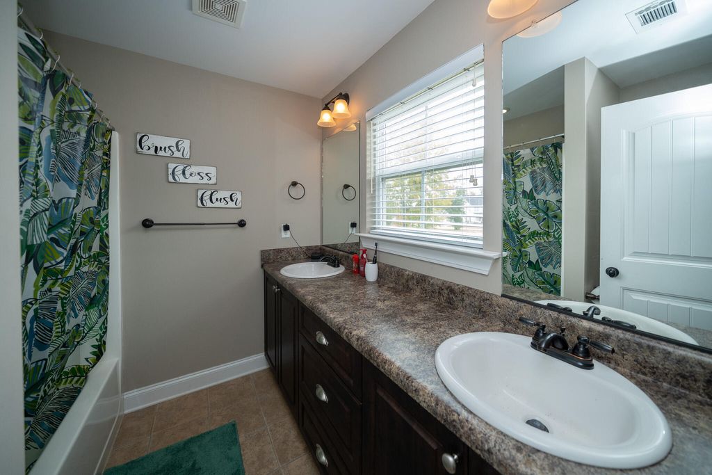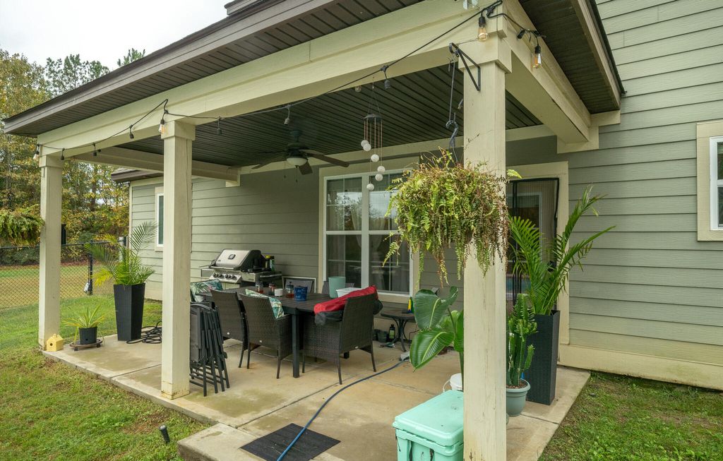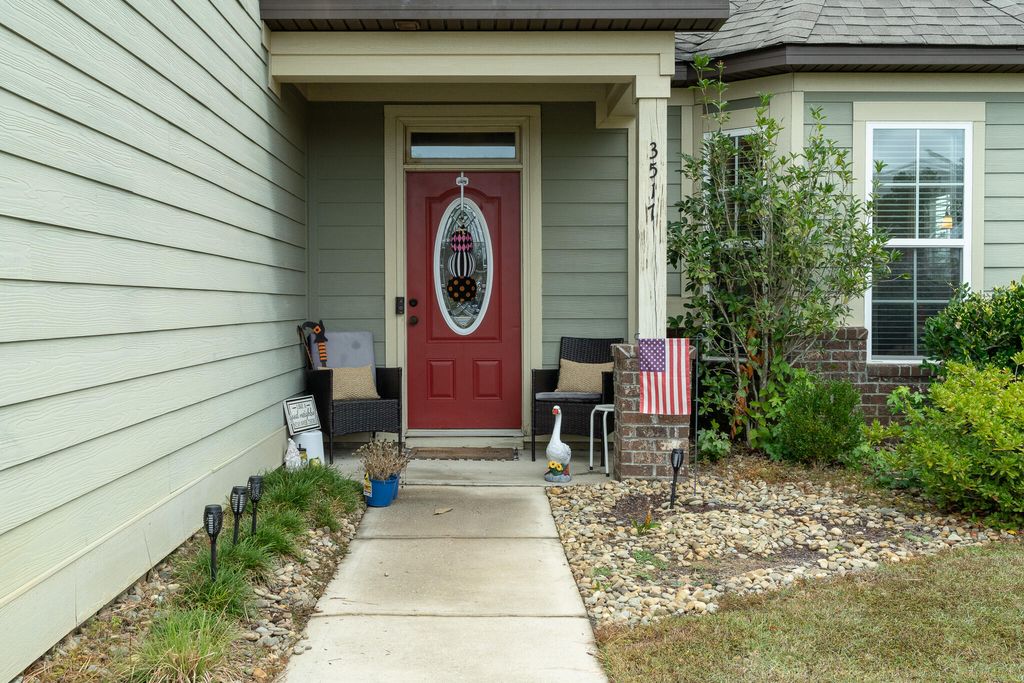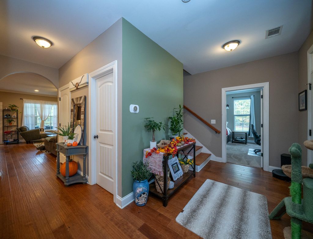 This beautiful home overlooks a quiet cul-de-sac and offers a combination of quality construction and elegant design. The residence features a 30-year architectural shingle roof and an in-ground sprinkler system with four programmable stages. Interior features include hand-scraped hardwood flooring throughout, complemented by carpet and ceramic tile in designated areas. All fixtures are finished in oil-rubbed bronze. The kitchen is also equipped with stainless steel appliances, granite countertops, a travertine tile backsplash, and bar-top-seating for three that overlooks the great room. Outdoor amenities include a large 11x20 covered patio overlooking a mid-sized lazy L vinyl liner pool- ideal for relaxing or entertaining. the property also includes six established blueberry bushes, a mature pear tree, and a storage shed. Additional upgrades include Nest thermostats, a comprehensive home security system, and installed carbon monoxide and smoke detectors for added safety.