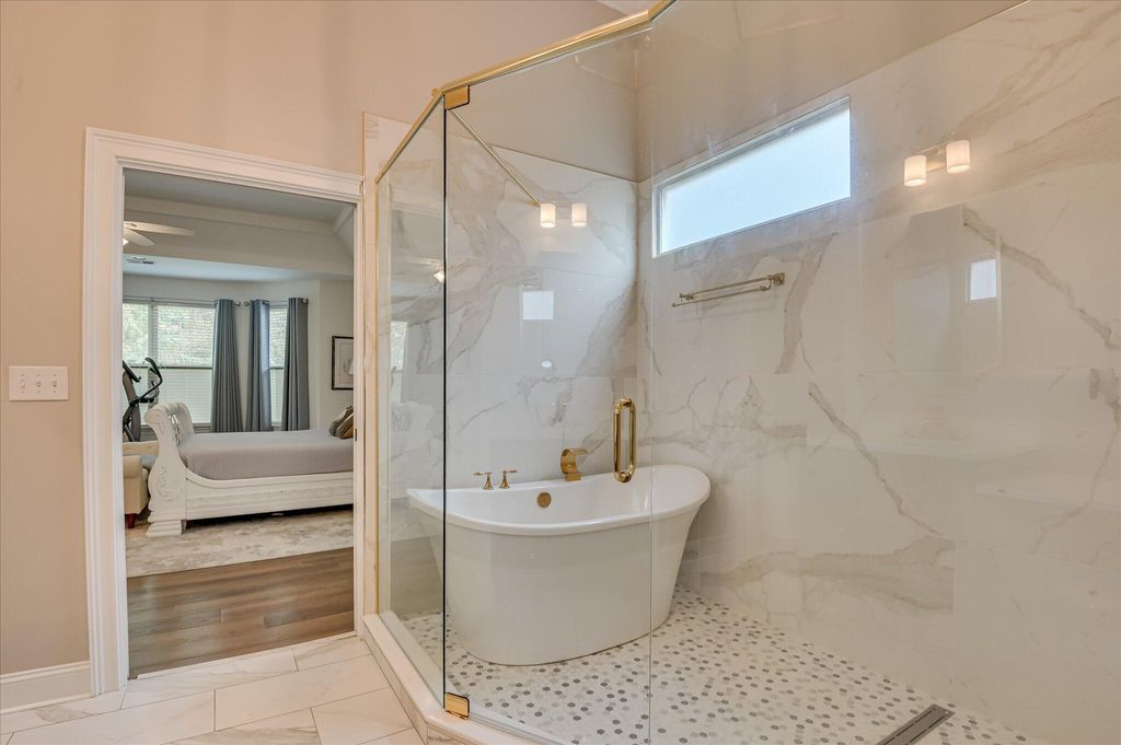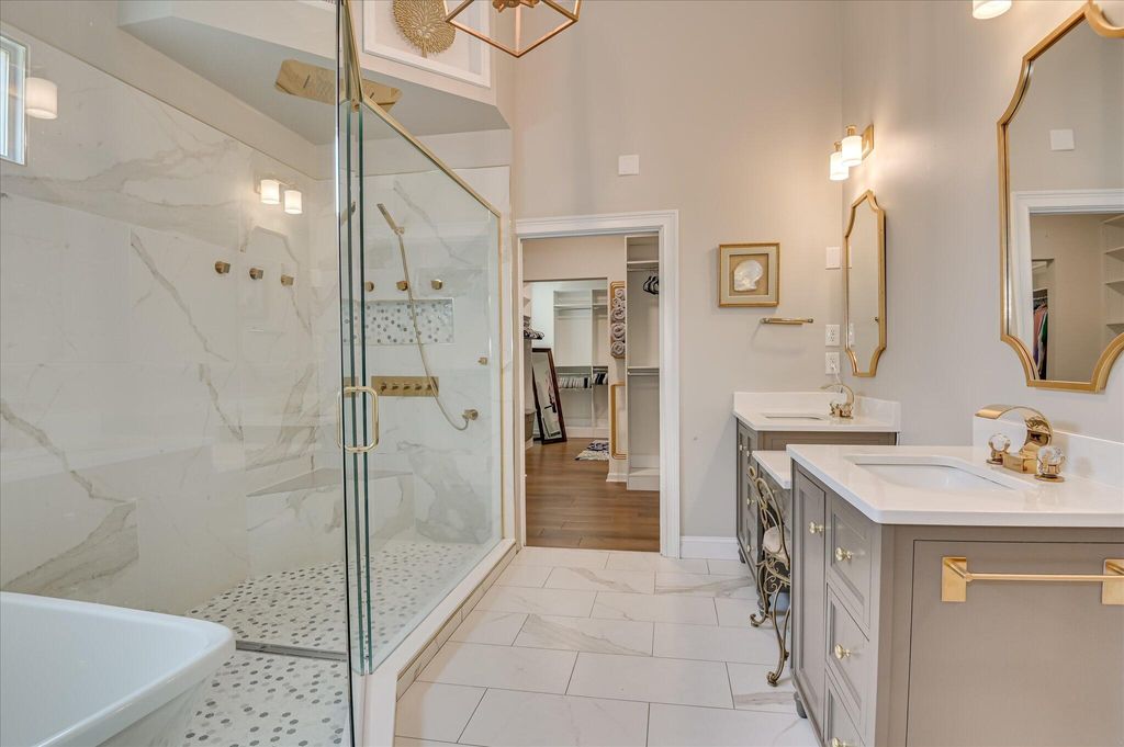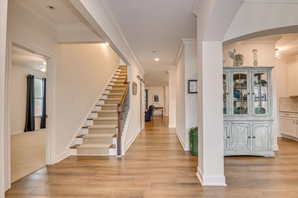 Welcome to 5316 Bull Street! A beautifully appointed ranch-style home that blends modern elegance with Southern charm. The exterior showcases stacked stone and Hardie Plank siding, a welcoming covered front porch, a double garage with additional parking space, and a privacy-fenced backyard with full landscaping and sprinkler systems in both front and rear yards. Inside, this home offers 4 spacious bedrooms and 4 full baths with Evacore waterproof hardwood flooring extending throughout the main living areas, creating a seamless and durable flow. The foyer with crown molding opens to a bright dining room highlighted by a stunning chandelier, wainscoting, arched doorways, and tray ceiling. Two bedrooms at the front of the home share a full bath, while a charming barn-door closet adds custom appeal near the entry. The open-concept gourmet kitchen is truly impressive, featuring quartz countertops and a full-height quartz backsplash, a beautiful island, double ovens, smooth electric cooktop, upgraded sink and faucet, recessed lighting, vaulted ceiling, butlers panty, and abundant cabinetry with a spacious pantry. The kitchen overlooks the great room, which features a decorative electric fireplace, making this the perfect space for entertaining or relaxing. A generous breakfast area adds everyday convenience, and a office/flex room off the kitchen provides the perfect home office or additional living area. An arched doorway leads to the primary suite which is a peaceful retreat with a tray ceiling, lots of windows for natural lighting and luxurious en-suite bathroom accessed through a pocket door. Enjoy a freestanding soaking tub, an elegant rainfall shower enclosed in a frameless glass wall with shower door, double vanities, with upgraded fixtures, and beautiful porcelain tile flooring. Another pocket door leads to a double custom walk-in closet with built-ins for optimal organization. Upstairs, hardwood stairs lead to a versatile bonus room, a spacious bedroom, and a full bath ideal for guests or extended family. Step outside to a screened-in porch overlooking a private backyard that backs to green space and includes an outdoor storage building. Conveniently located just minutes from Fort Gordon and I-20, this home is filled with high-end upgrades and thoughtful details throughout. It's move-in ready and sure to impress"”schedule your showing today!