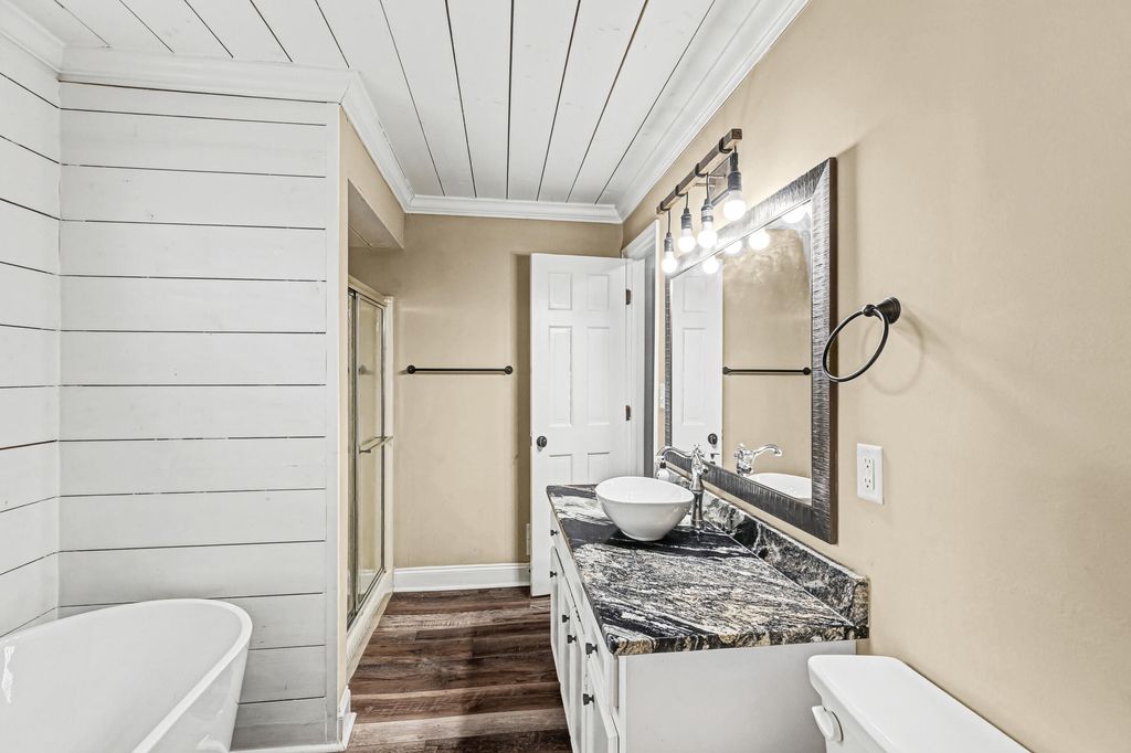 Step into the warmth of the season with this beautifully renovated 3-bedroom, 2.5-bath home in the sought-after Kingston community"”just minutes from Fort Gordon, shopping, and dining in West Augusta. With the holidays around the corner, imagine gathering friends and family around the crackling fireplace in your spacious great room or hosting Thanksgiving dinner in a dining area designed for connection and comfort. From the moment you walk in, you'll notice the attention to detail"”matte-finish granite countertops, stainless steel appliances, LVP flooring, and a fresh, modern palette that feels both elegant and inviting. The owner's suite on the main level offers the perfect retreat, featuring a stand-alone soaking tub, dual vanities, and a generous walk-in closet. Upstairs, two additional bedrooms"”one large enough to double as a bonus or playroom"”provide flexibility for your lifestyle. Work from home? The main-level office offers quiet focus or can easily serve as a fourth bedroom with its own half bath. Step outside to enjoy a newly built deck overlooking your fenced backyard, ideal for crisp fall evenings and future summer barbecues. Located on a quiet cul-de-sac in Kingston, this home includes access to sidewalk-lined streets, a neighborhood pool, and friendly community spaces"”perfect for holiday strolls and seasonal gatherings. Just 10 minutes from Fort Gordon's Main Gate and moments from Wrightsboro Road's conveniences, 1304 Dominica Drive delivers the best of Augusta living"”modern comfort, timeless charm, and a community that feels like home.