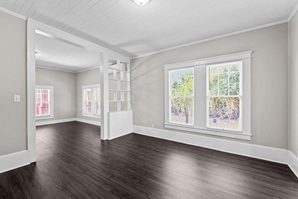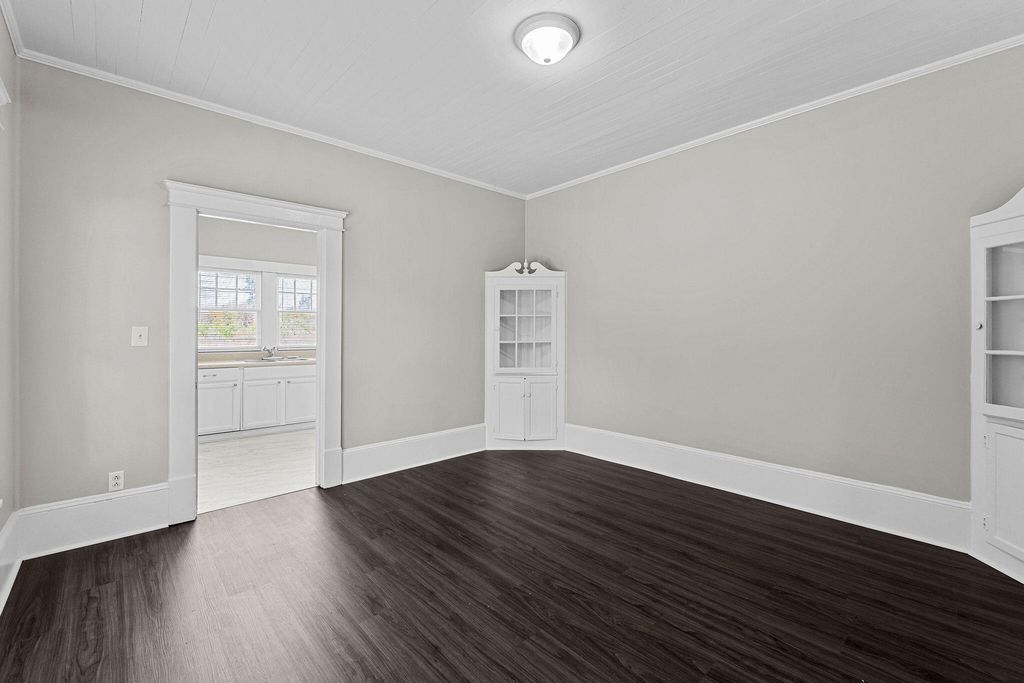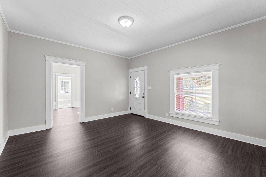 Step into a home that actually lives up to the word renovated. This 2-bedroom, 1.5-bath charmer sits on a full acre and blends crisp updates with the kind of character newer builds can't touch. The fresh green siding and brick columns give the exterior instant curb appeal, while the large covered front porch sets the tone before you ever walk inside. Once you're in, the updates hit immediately: new neutral paint, new flooring, and bright natural light throughout. But the real magic is in the preserved details"”original built-ins in the dining room, substantial millwork, oversized baseboards, and stunning original wooden ceilings that anchor the home with warmth and authenticity. The kitchen has been refreshed with new appliances, open shelving, and plenty of light, creating a clean, functional workspace that still feels connected to the home's historical identity. If you want a property that offers space, style, and soul"”this one delivers. One acre, smart updates, and character that wasn't engineered but earned. This is the rare home that actually feels like home. Schedule your private showing today!