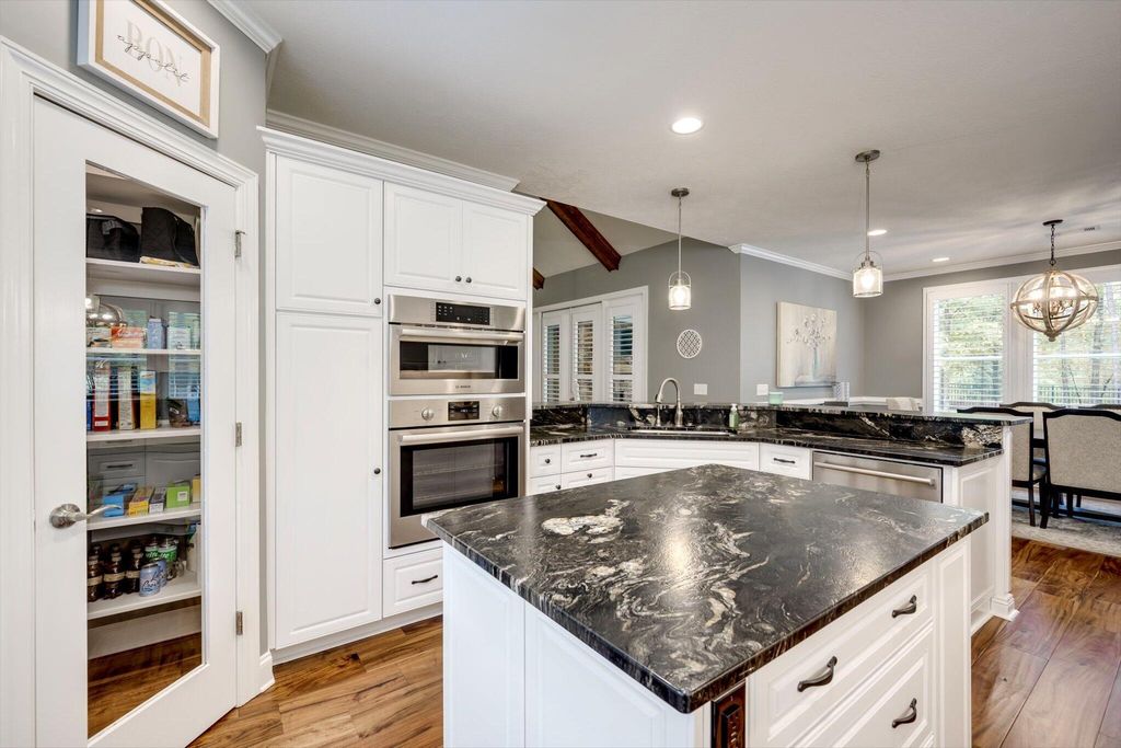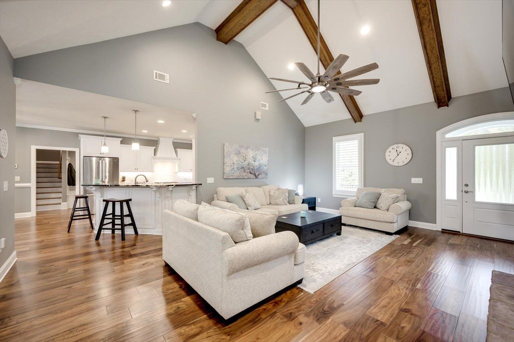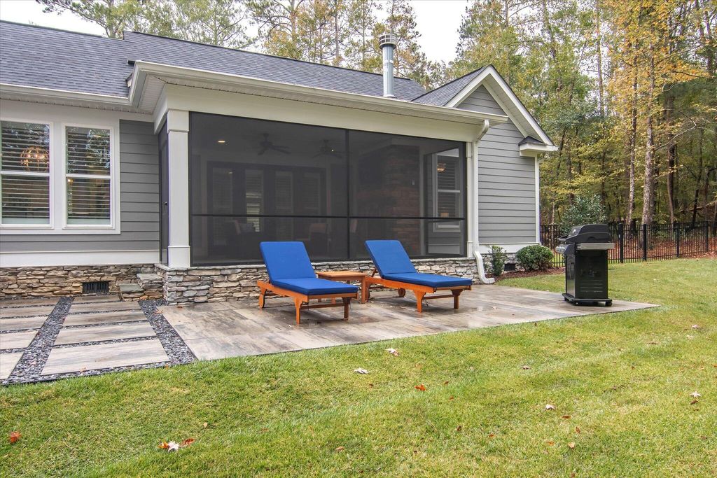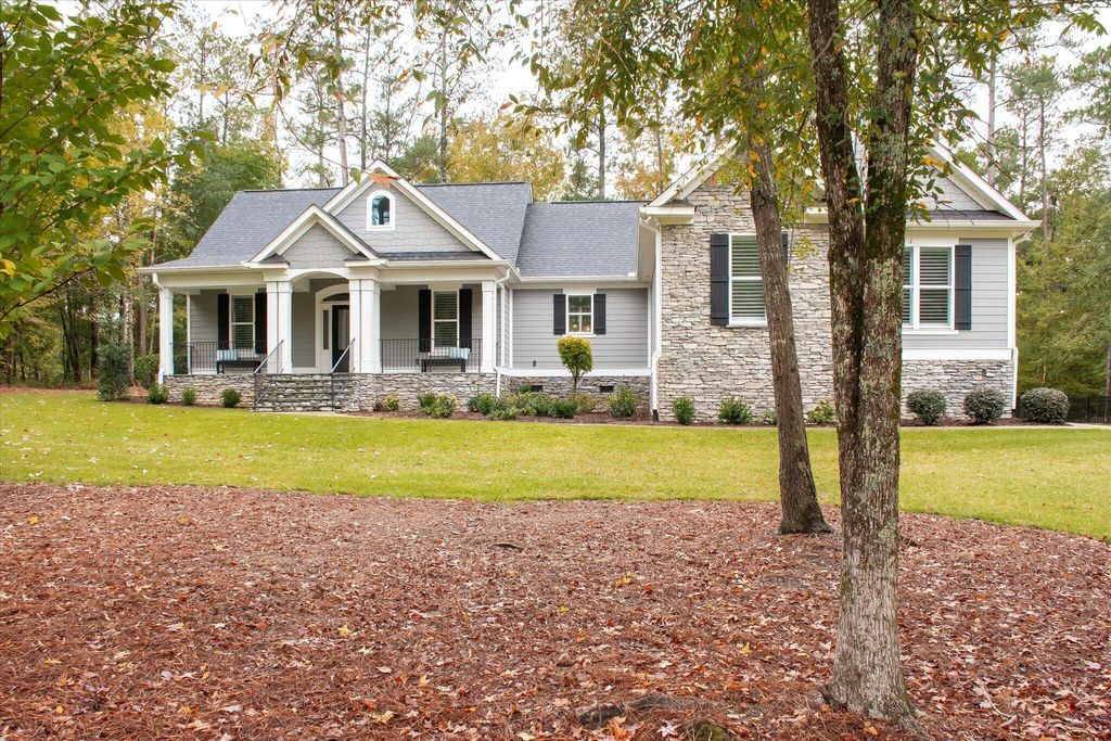 Welcome to 85 Shooting Match - A Refined Southern Retreat Tucked privately at the end of a tranquil cul-de-sac within the prestigious Mt. Vintage Plantation community, 85 Shooting Match offers a rare blend of timeless Southern elegance and modern sophistication. Perfectly positioned to overlook the 9th fairway of the acclaimed Vintage Course, this custom-built farmhouse-style residence was thoughtfully designed to highlight comfort, craftsmanship, and the art of gracious living. Built by Blackston Custom Homes and meticulously maintained, this exceptional home spans 2,813 square feet of refined living space. The exterior radiates charm and curb appeal with updated and manicured landscaping, accent lighting, wrought-iron fencing, and a welcoming front porch ideal for morning coffee or evening relaxation. Step through the stunning glass entryway into an airy, open-concept interior filled with natural light and impeccable finishes. This homes adorns fresh paint and new carpet throughout. The great room features dramatic vaulted ceilings with exposed beams, a striking stone fireplace, and expansive windows framing panoramic views of the rolling fairway. Designed for effortless entertaining, the space flows seamlessly into the dining area and gourmet kitchen. The chef's kitchen is a true showpiece"”boasting premium stainless appliances, honed granite countertops, an oversized island for casual dining or meal prep, and abundant soft-close cabinetry. A walk-in pantry, appliance garage, and thoughtful storage solutions add both style and functionality. Outdoor living is equally impressive. Step onto the screened-in back porch or slate patio and enjoy a cozy stone fireplace, built-in gas line for grilling, and serene golf course vistas. This inviting space is perfect for gatherings year-round or quiet evenings under the stars. The owner's suite is a private sanctuary featuring custom millwork, a third fireplace, and a coffered ceiling that adds depth and warmth. Large windows capture peaceful course views, while the luxurious en-suite bath offers dual granite vanities, a frameless glass shower, and an expansive dressing area with built-in cabinetry, mirror, and secure safe. Two additional bedrooms, located on the opposite side of the home for added privacy, share a beautifully designed bath with separate vanity and wet areas"”ideal for guests or family. Upstairs, a spacious bonus room with dormer windows provides flexible use as a home office, guest retreat, or creative studio. Additional highlights include: Window shutters throughout the home EV charger in the garage Tankless hot water heater with temperature control in the owner's closet Well-appointed laundry room with cabinetry, sink, and hanging space 2.5-car garage with three carriage-style doors and extended driveway parking Fresh paint, new carpet, and updated landscaping for a truly move-in-ready experience Every inch of this home reflects careful attention to detail and enduring quality. From its architectural design to its serene golf course backdrop, 85 Shooting Match delivers a lifestyle of sophistication, comfort, and Southern charm in one of Mt. Vintage's most sought-after settings.