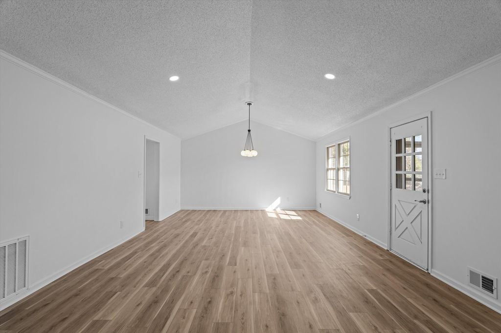 A complete transformation in the heart of Evans! Fully renovated from top to bottom, this 3 bedroom, 2 bath home now delivers the style, function, and finish level buyers want. Fresh landscaping with brand-new sod sets the tone before you even step inside. Once you're in, everything feels new: all-new flooring, fresh neutral paint, and a standout kitchen with white soft-close cabinets that go to the ceiling, a stylish blue backsplash, large single-basin sink, and brand-new stainless steel appliances. The large laundry room and oversized two-car garage with a built-in storage closet give you practical space you won't outgrow. The living room brings character with vaulted ceilings, a painted brick fireplace with dentil molding, and built-ins that add both function and charm. Just off the main living area, a screened-in deck gives you a perfect indoor-outdoor retreat. All three bedrooms are generous in size, the primary suite includes a walk-in closet, and both bathrooms have been updated with double vanities and modern finishes. Outside, two additional storage buildings give you room for tools, hobbies, or overflow. Top-tier location. Total renovation. Zero projects left. This home is a showstopper. Schedule your private showing today!