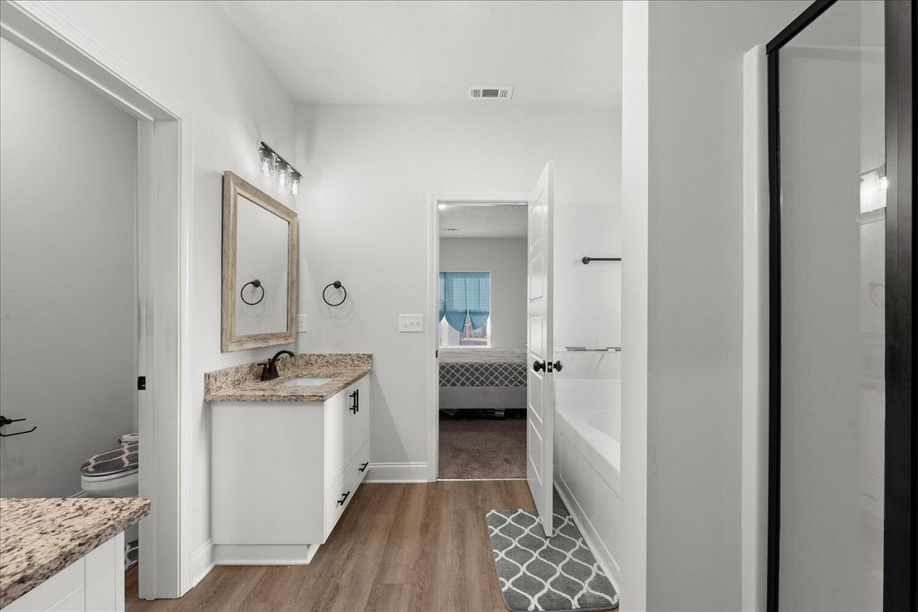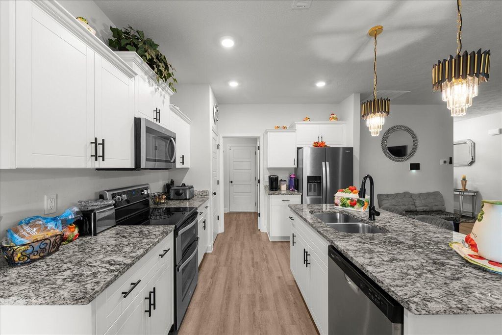 No need to wait on new construction! This Richfield floor plan offers a thoughtful design and plenty of space to make everyday living easy. The open layout connects the living area and kitchen for an inviting flow, with a large granite island, stainless appliances, and room to gather or entertain. The flex room with French doors is ideal for a home office or quiet spot to unwind. The owner's suite features double vanities, a soaking tub, a separate shower, and a walk-in closet. Three additional bedrooms with walk-in closets sit on the opposite side of the home for added privacy. Luxury vinyl plank flooring, bright natural light, and NO HOA gives this home all of the flexibility and comfort you desire!