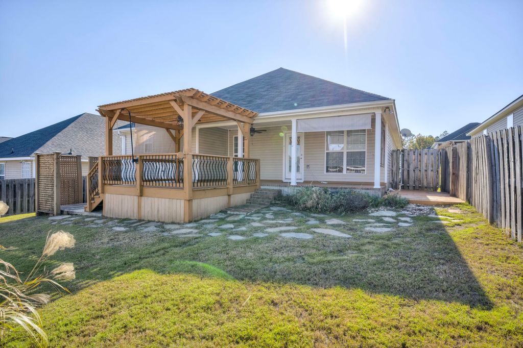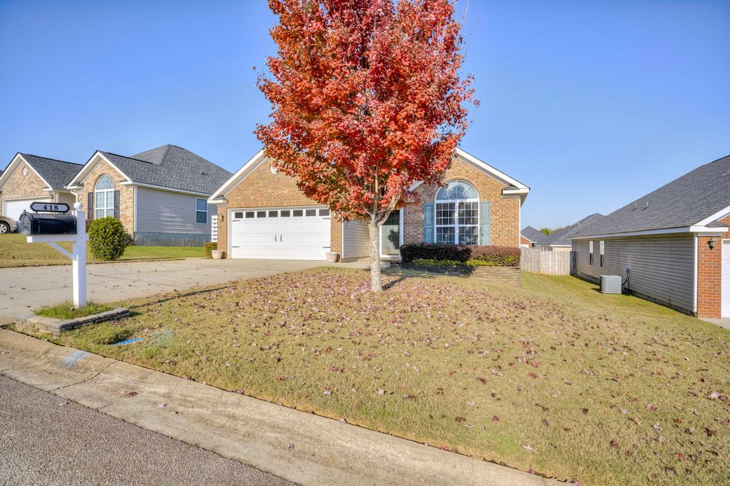 This 3-bedroom, 2-bath patio home in Grovetown blends classic old school character with today's modern layout! Starting with the distinctive brick wall in the entryway and living room (you will not find this in any other newer construction house!), to the wood look and tile flooring throughout the home (NO CARPET!) to the cathedral/vaulted living room ceiling! Continuing with the oversized windows, trimmed out fire place, and open concept floor plan! The kitchen features dark granite countertops that contrast perfectly with the white cabinetry and includes a full backsplash; not to mention the separate pantry and laundry space! Appliances are stainless steel and all of them stay! The master bathroom has also been beautifully remodeled with a tiled shower! All these features and more combine to give you the best of the old with the modern convenience of the new! O, and out back you will also find a spacious deck, perfect for entertaining while enjoying the peaceful trickling water feature in the full privacy fenced-in yard! With its blend of thoughtful updates and character-filled details, this home is the perfect spot for anyone seeking a comfortable retreat to call their own, or the home base to come and go from with easy minimal yard/house upkeep! Come see it today!