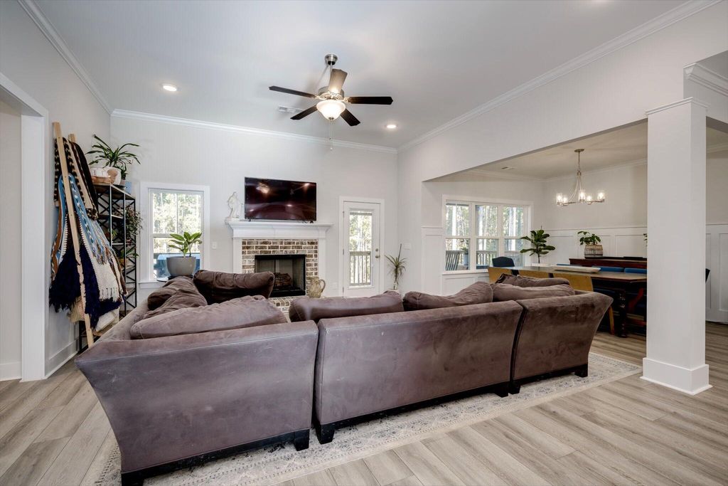 Nestled on 2.55 acres you'll find this amazing 3600 sq.ft. 5 bedroom, 3 1/2 bath home perfect for a large family. The main level features an open floor plan with large airy kitchen with island seating for 4, farmhouse sink, gas cooktop, quartz countertops and stainless-steel appliances. Great Room features brick gas fireplace and extra high ceilings. Adjacent is a Dining Room with picturesque views and heavy wainscotting. Owner suite on main level and on suite offering double vanity, large soaker tub and walk in shower. There are 2 extra bedrooms on main level with jack and jill baths. Laundry room and half bath also on main level. Downstairs features another huge Great Room with small kitchenette (refrigerator, sink, and dishwasher). Two more bedrooms with bathroom and separate office! There are also 2 more unfinished rooms perfect for storage/gym/flex room. This layout is ideal for someone needing a multigenerational floorplan! On the rear of the home, you'll find an upper and lower deck with amazing views of the private spacious backyard perfect for an inground pool!! Just minutes from I-20. Only 1 year old with builder warranty still in place.