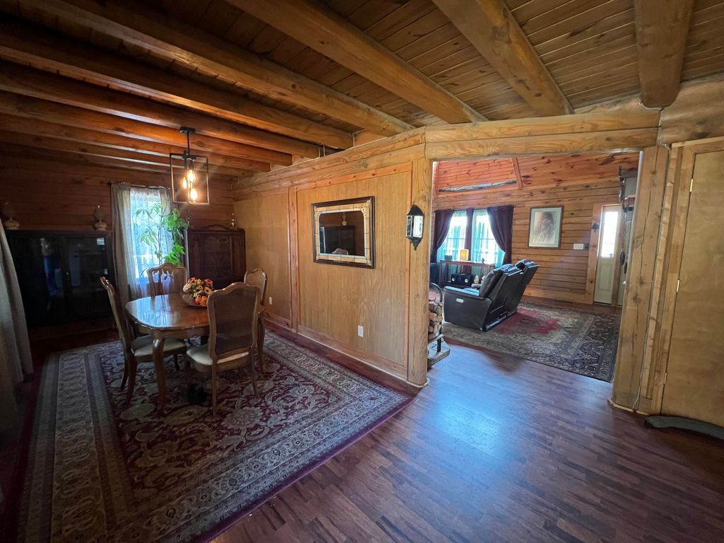 Welcome to your private slice of paradise! Nestled on just over 12 serene acres, this stunning 2,900 sq. ft. traditional log cabin offers the perfect blend of rustic charm and modern comfort. Step into the inviting living room, complete with soaring ceilings and a cozy wood-burning stove, ideal for chilly evenings. The open-concept dining area flows seamlessly into a well-appointed kitchen featuring abundant cabinetry, generous counter space, a breakfast bar, and two spacious pantries. The main-level owner's suite is a true retreat, boasting a luxurious ensuite bath with a jacuzzi tub, walk-in shower, large vanity, and private water closet. Convenience meets functionality with a side-entry mudroom connected to the laundry room and a handy half bath. Upstairs, a loft overlooks the living room and leads to three additional bedrooms and a full bath"”perfect for family or guests. The heated basement offers over 1,500 sq. ft. of potential, ready to be finished to suit your needs. Enjoy peaceful mornings and relaxing evenings on the wraparound porch, surrounded by nature's beauty. The property also includes a detached garage/workshop with 200-amp service, a chicken coop with electricity, and a flourishing garden area with muscadines, blackberries, grapes, and a variety of fruit trees scattered throughout the property. Despite its tranquil rural setting, the property is equipped with high-speed fiber optic internet"”ideal for remote work, streaming, or staying connected with ease. This one-of-a-kind property offers space, privacy, and endless possibilities"”don't miss your chance to make it yours!