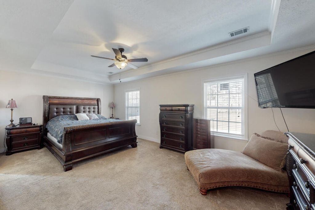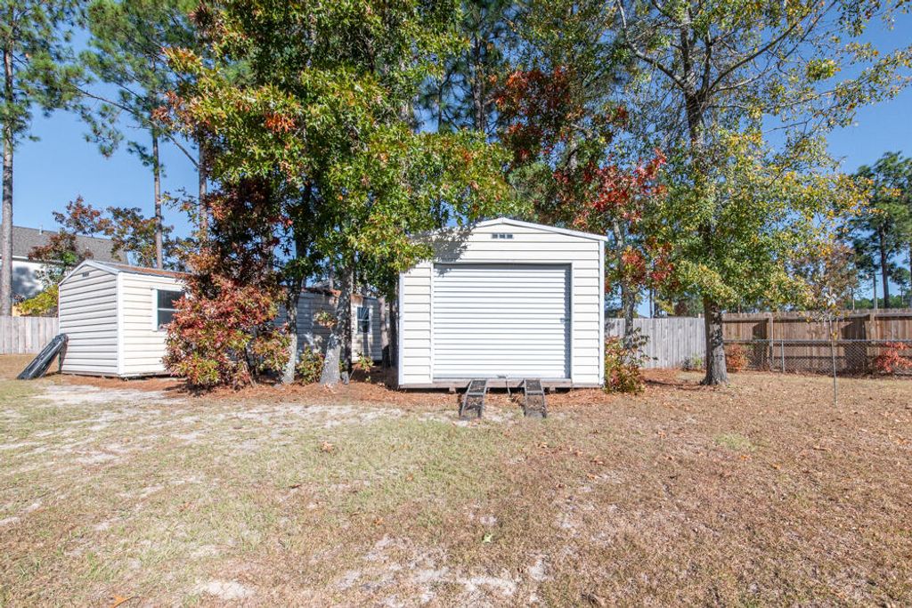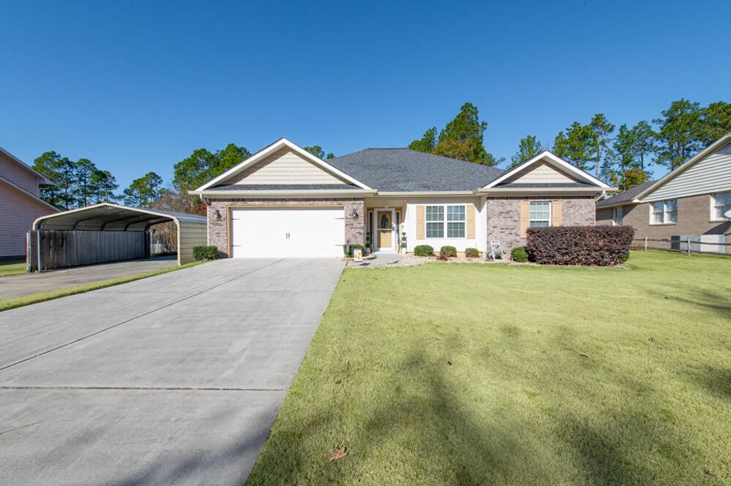 *All One Level - 2 Car Garage Plus Double Carport & Two Large Storage Buildings On 0.58 Acre Lot* Discover the perfect blend of comfort and style in this beautifully designed ranch home featuring an open, split floor plan ideal for everyday living and entertaining! Step inside to find wood floors throughout the main living areas, creating a warm and inviting flow! The spacious living room impresses with vaulted ceilings and a ceiling fan, seamlessly connecting to a welcoming dining room! The kitchen is beautiful with granite countertops, a tiled backsplash, breakfast bar, oven, built-in microwave, and dishwasher, plus durable ceramic tile flooring! A dedicated laundry room with extra storage adds convenience! The owner's suite offers relaxation with a tray ceiling, ceiling fan, and walk-in closet! The ensuite bath features a walk-in shower and separate soaking tub with tile surround, double vanities with framed mirrors, and granite countertops! Three additional guest bedrooms - each with a ceiling fan - share a well-appointed full hall bath with a framed mirror and granite countertops! Enjoy outdoor living at its best with a large, fenced yard complete with a covered patio, and deck - perfect for gatherings, gardening, or relaxing in your own private retreat! Two-car garage plus 2 additional carport spaces! This home checks all the boxes"”space, style, and modern conveniences. Don't miss it! There is no HOA yet homeowners maintain their space!