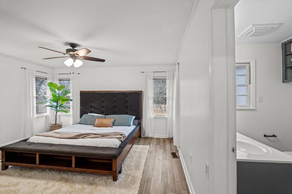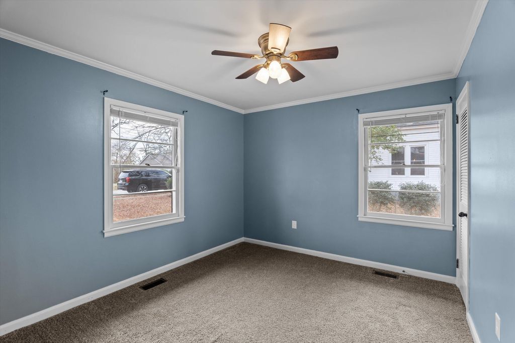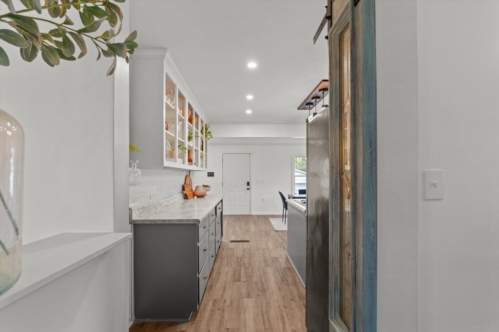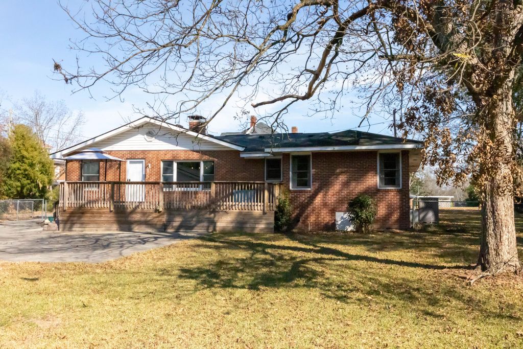 Situated in one of Thomson's most sought after locations, this updated brick ranch offers a thoughtful balance of character, comfort, and convenience. The home features 3 bedrooms and 2 full bathrooms with a spacious, well designed layout. Highlights include a welcoming foyer, a comfortable sitting area, a dedicated office space, a formal dining room, a breakfast room, and three nicely sized bedrooms. The oversized kitchen offers generous cabinet and counter space, ideal for cooking, gathering, and everyday use. The living room is anchored by a gas fireplace, while abundant natural light throughout the home enhances each space. Recent improvements include fresh interior paint, updated light fixtures, new flooring, and a newly built 10x30 wood deck overlooking the expansive backyard. Set on nearly an acre, the fenced yard provides a peaceful, private setting with mature pecan, pear, muscadine, and fig trees. A detached two car garage with electricity and an attached workshop provides excellent storage and flexible project space. Additional features include a long driveway, a rear parking pad for additional vehicles, an RV plug, and two separate storage buildings. Conveniently located near local shops, restaurants, and coffee spots, with easy access to I-20, this property offers everyday convenience paired with the charm of historic Thomson. Distinct custom details, including barn doors crafted from a local church, enhance the home's unique character within the Historic District. This property presents a rare opportunity to enjoy generous space, thoughtful updates, and a prime location.