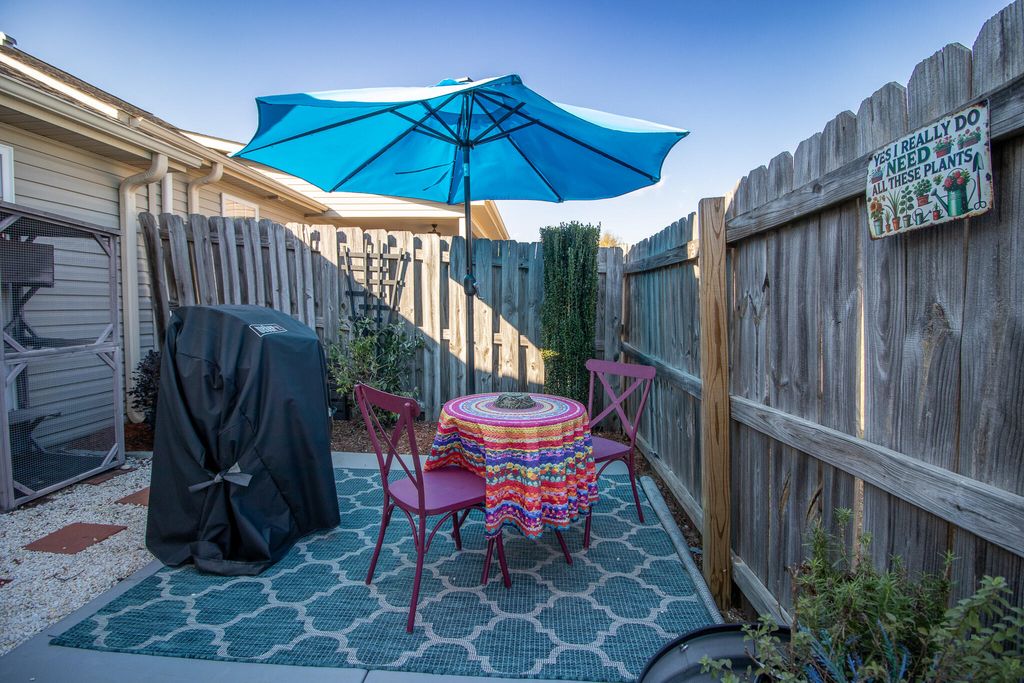 If you are looking for a lovely townhouse with beautiful upgrades, then look no further than this home. Simply walking through the next door evokes a feeling that this is an uncommon home due to its design and features. The kitchen has easy care Corian marble counters and a mirrored back splash for a bright, happy environment. A new double oven, electric glass top stove and matching microwave make for an ideal cooking experience. The cabinets have unique white porcelain kitchen knobs, and there is LED ceiling light with a dimmer. The unit is freshly pained and has easy care engineered wood floors throughout, with carpet in the two of the bedrooms and LVP in the third. There is a large master bedroom and bath. Storm does on the front and back door provides energy savings as well as glare protection lightly tinted windows throughout. One of the most enjoyable parts of the home is the covered conversation patio. With a new Bahama fan, permitter dimmable patio lights and tiny lights on the shrubbery, it makes for an outstanding place to meet with friends. There is 7 by 8 plastic decking to increase patio usable space for lunging or grilling , as well as two yard receptacles within the privacy fence. There is a one car garage with lots of shelving for storage. This home is well designed for comfortable easy living, and a home such as this does not last long. In order for you to have a lovely experience, the owner will repaint them to match your color scheme. Current owner will have the home professionally cleaned prior to you moving in so that it is turn key ready.