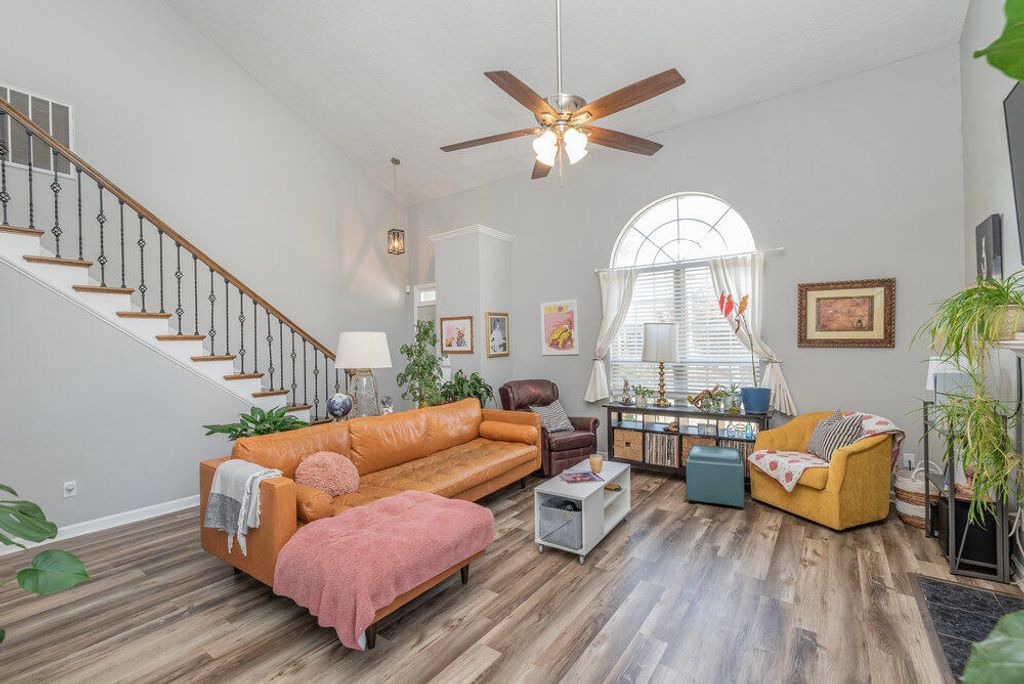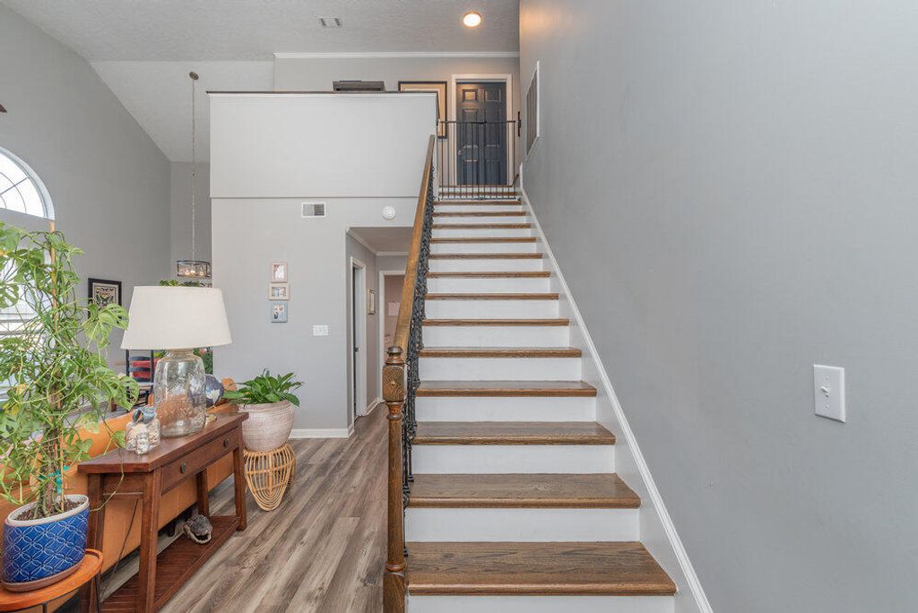 This beautifully updated two-story home offers a modern and inviting atmosphere from the moment you walk in. You'll be greeted by luxury wood-look plank vinyl flooring that flows throughout the main living areas. The spacious great room features a gas log fireplace with a stylish tiled surround and a charming wood hearth. The kitchen is a cook's delight, complete with granite countertops, newer cabinetry, stainless steel black appliances, a subway tile backsplash, and a bar-height counter with seating for two overlooking the sunroom. The primary suite includes a generous walk-in closet and an ensuite bathroom with dual granite-top vanities, a large walk-in shower, and a relaxing jacuzzi tub accented with subway tile. Hardwood stairs lead you to the second level, where you'll find a versatile loft ideal for a study or computer area. A bonus room offers additional flexibility"”perfect for a home office, playroom, or hobby space. This low-maintenance home provides ample storage throughout. Don't forget to step out onto the spacious back deck, ideal for grilling, entertaining, and enjoying outdoor living.