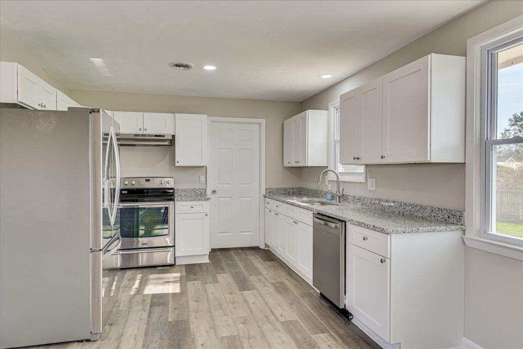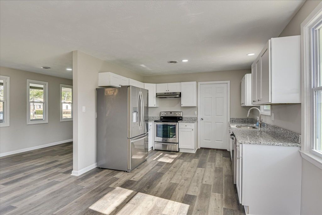 Completely renovated and move-in ready, this charming home on Sandpiper Lane feels brand new from the moment you walk in. A very open layout sets the tone for modern living, with the wall between the kitchen and living room removed to create a bright, airy, and welcoming space that's perfect for both everyday life and entertaining. The heart of the home is the fully renovated kitchen, featuring granite countertops, stainless steel appliances, updated cabinetry, and a seamless flow into the living and dining areas so you can cook, gather, and relax all in one open space. Both the main bath and guest bath have been completely renovated with fresh finishes and contemporary fixtures, giving them a clean, spa-like feel. Durable LVP flooring runs through the kitchen, living room, laundry room, hallway, and both bathrooms, while all three bedrooms offer brand new carpet for added comfort. Fresh interior paint and all-new light fixtures throughout bring a warm, updated look to every room. Big ticket items have already been taken care of: a brand-new roof and new AC unit provide peace of mind and improved efficiency for years to come. With its total renovation, very open floor plan, and stylish granite and stainless kitchen, this Augusta home is truly move in ready for its next owner.