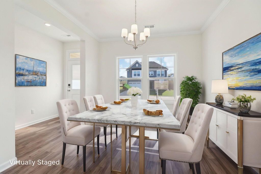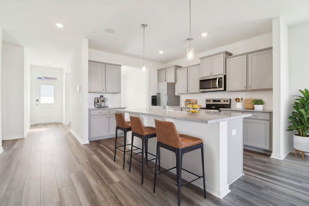 You asked we listened! One of the most common requests in Camellia Park is a floor plan with the primary suite on the main level, and we're excited to introduce The Buck Island II, the perfect blend of ranch and two-story living. Upon entry, you're welcomed by a spacious foyer and a dedicated dining room. The open-concept kitchen features a large quartz island, Bluetooth sound system, and stainless steel appliances, flowing seamlessly into a large family room with access to a covered patio, perfect for indoor/outdoor entertaining. Just off the garage entry, you'll find a powder room and a large laundry room for added convenience. The main-level owner's suite overlooks the backyard and includes a spa-like en suite bath with double quartz vanities, a walk-in shower, garden tub, and an expansive walk-in closet. Upstairs offers two generously sized bedrooms that share a full bath with double sinks, ideal for guests or family. The charming exterior features navy blue accents and stacked stone, adding to this home's standout curb appeal. Stop by for a private showing, our site team is on-site daily! Ask us about our exclusive financing incentives that could get you into this home for less than you think! *Photos will be updated as construction progresses*