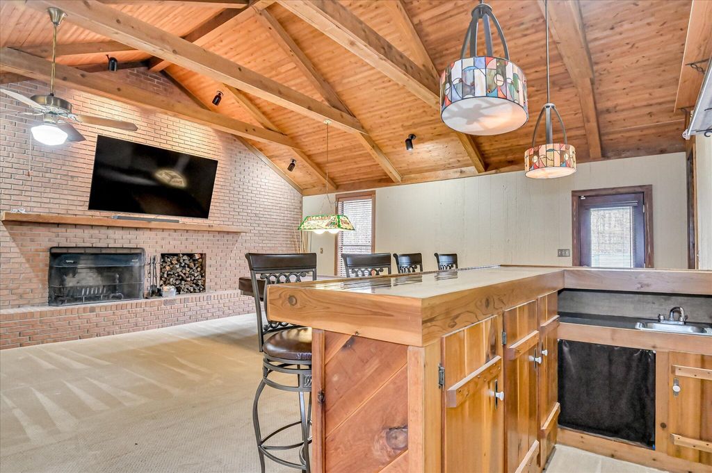 Private family retreat on 6 acres! This custom-built home was thoughtfully designed. With 2,135 square feet, the home has 3 bedrooms and 2 baths, and it features amazing living spaces, both indoors and out. Gather in the 20X23-ft living room with its vaulted ceiling and huge brick fireplace, or around the sprawling center island in the fully renovated kitchen (granite counters, tile backsplash, custom cabinetry galore and high-end appliances). The kitchen opens up to a spacious dining area and French doors lead out to the deck and main-level screen porch. Upstairs, the master suite embraces the privacy and serenity of the property with its own 200-sq. ft. screen porch. Outside, find a 16X32-ft inground swimming pool (new liner!), patio areas and screened gazebo. Need storage or workshop space? Check out the 26X35-ft detached garage as well as two outbuildings with power. Amazing attention to detail throughout!