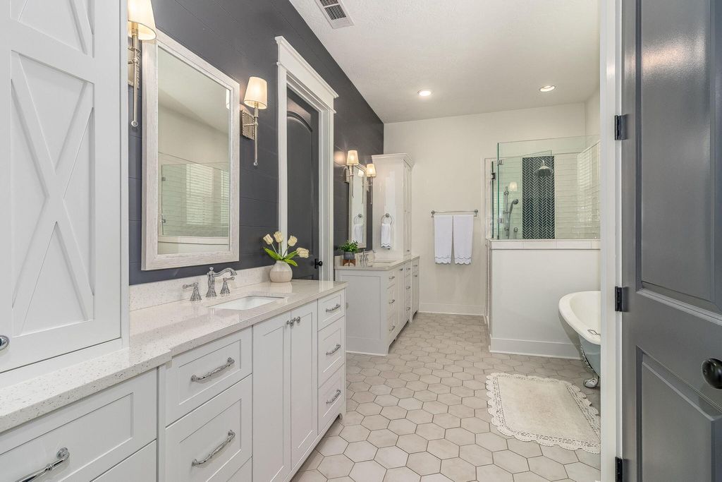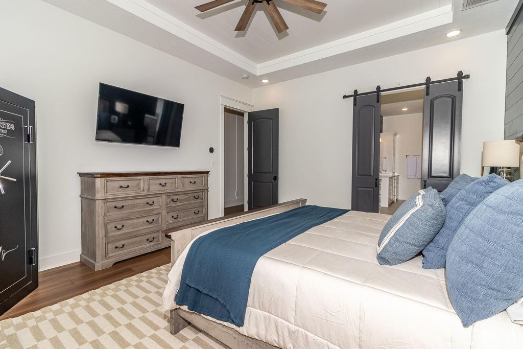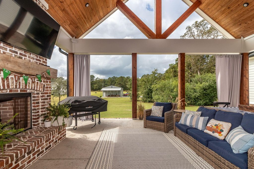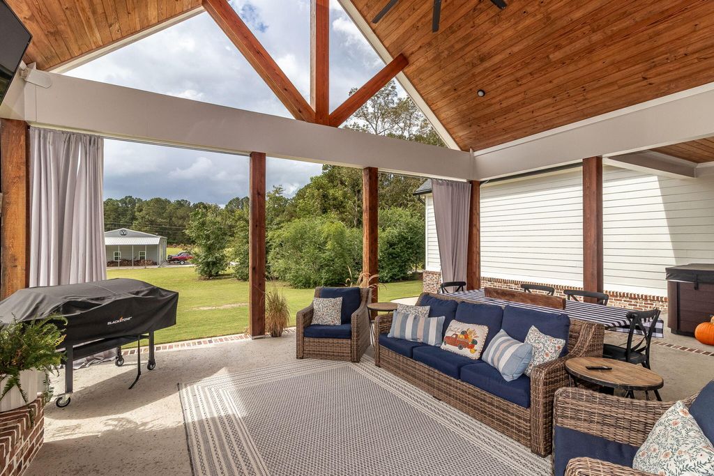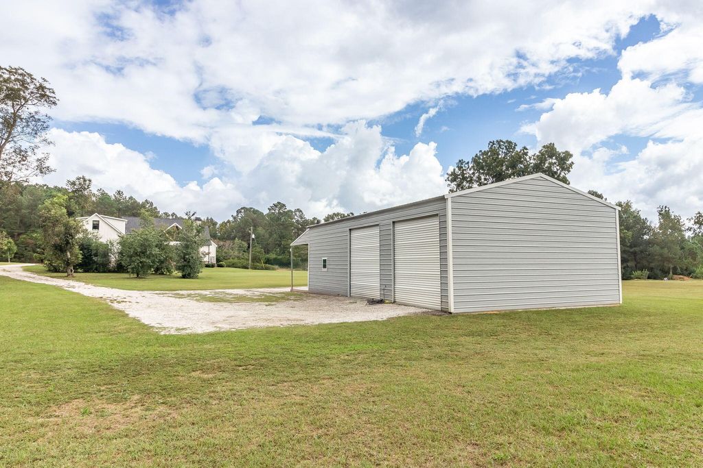 Welcome to your own private retreat. Set on 2.5 picturesque acres, this custom-built 4 bed, 3.5 bath home blends peaceful country living with refined modern comfort. Tucked away on a quiet street, yet only 1 mile from I-20 and minutes from Harlem, Evans, and Augusta, you truly get the best of both convenience and seclusion with this property. Step inside to a warm, carefully crafted interior foyer with ceiling paneling and beautiful details that welcome you from the moment you walk in. The living room instantly impresses you with a 20 ft vaulted ceiling, cedar beams, built-ins, surround sound, and a massive brick gas fireplace that create a perfect focal point for the space. The kitchen offers abundant cabinetry and quartz countertop space, perfect for hosting, meal prepping, or family gathering. The center island kitchen features GE Café appliances, including a gas cooktop, wall oven, microwave with trim kit, dishwasher, pot filler and refrigerator.. all just steps to the custom walk-in pantry and formal dining area. A dedicated home office adds both function and charm with locally crafted wood-and-glass French doors and custom built-ins. The main-level owner's suite delivers comfort and privacy with a spacious walk-in closet, a beautifully tiled shower, claw-foot tub, and an elegant ensuite layout. This split bedroom plan offers two additional bedrooms on the main level with FABULOUS jack and jill bathrooms with a full tile shower and frameless glass enclosures, each space thoughtfully designed with separate walk-in closets and vanity spaces. Off of the oversized two car garage (complete with 10x8 insulated doors, 25'4'' depth, and 30' width), you will find the perfect landing space for everyday entry with locker space and a half bath that is a true showstopper with a floating wood vanity, brick accent wall, vessel sink, and wall-mounted faucet. Just down the hall find the large laundry room boasting a herringbone brick floor, farmhouse sink, tile backsplash, and wood shelving. Upstairs find the sprawling 4th bedroom with over 500 sq ft, a walk-in closet and ensuite bath. This space offers endless possibilities: a movie room, playroom, guest suite, or ideal space for a college student. Outside, the entertaining potential is unmatched. The 20x25 vaulted back porch (plus a separate 12x11 grill porch) features a stained tongue-and-groove ceiling, wood-burning fireplace, and built-in surround sound, perfect for hosting friends, family, and football nights. To complete this exquisite property, find a 30x52 workshop with power, hot and cold water, a wood-burning fireplace, two 12x12 roll-up doors, and a 14-ft front lean-to, all ideal for storage, projects, or hobbies. This property offers a rare combination of craftsmanship, land, and convenience for its next owner to enjoy!