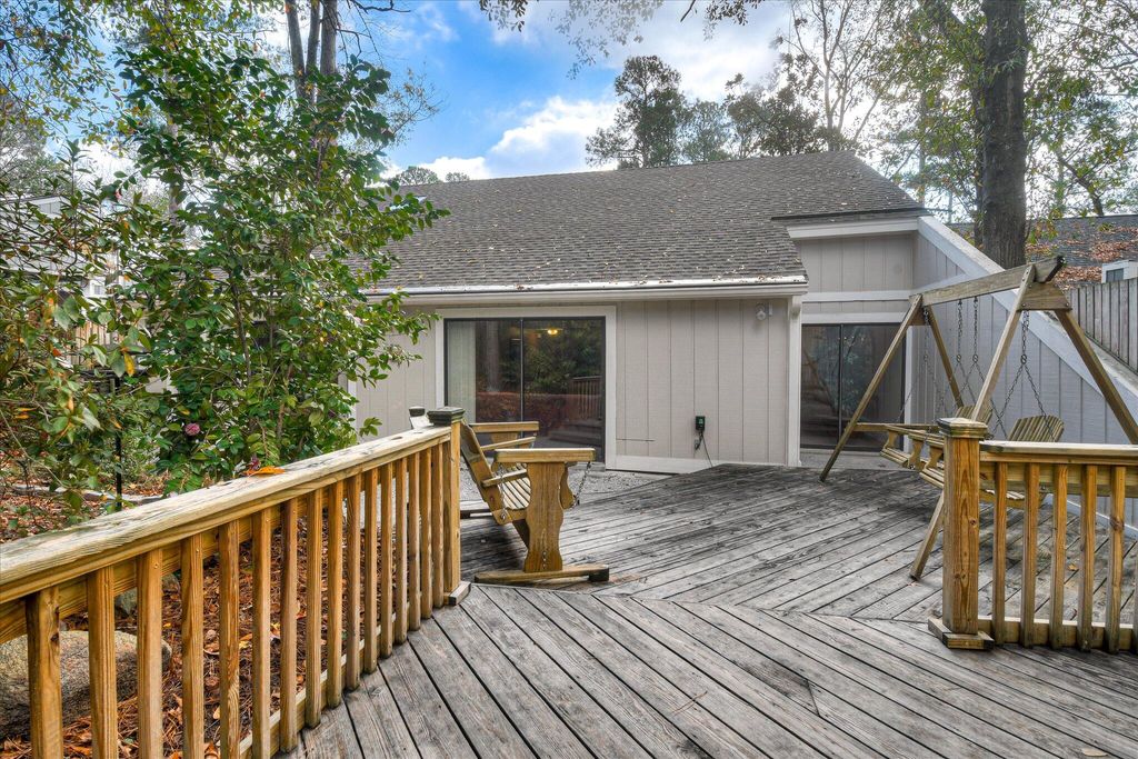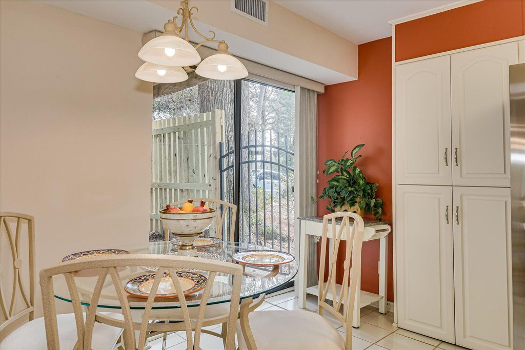 Rare opportunity in Forest Hills Racquet Club! Located in the heart of West Augusta and within walking distance to Rae's Coastal Café, this 4-bedroom, 2-bath end unit townhome stands out as one of the largest properties in the neighborhood"”featuring a true single-car garage and no shared living-space walls for added privacy and comfort. Recently refreshed with a neutral gray exterior accented by a Georgia-red front door and stained-glass transom, the home welcomes you with beautiful hardwood floors, soaring ceilings, and large windows that fill the living space with natural light. The main living area also features four sliding glass doors that open onto a large, private patio, creating an exceptional indoor-outdoor flow. The kitchen offers white cabinetry, Corian countertops, a tumbled-marble backsplash, stainless steel microwave and refrigerator, center island, and an inviting eat-in area. A convenient side-door leads directly to the yard"”perfect for grilling or outdoor dining. The main level includes three bedrooms and a full hall bath, along with a laundry closet (washer and dryer remain). Upstairs, a loft with a striking round stained-glass window leads into the private owner's suite featuring a walk-in closet and a full bath with a walk-in shower. French doors open onto a spacious deck with its own staircase"”an excellent feature if a separate entrance is desired for a caretaker, guest, or multi-generational living. The meticulously maintained garage offers tiled flooring, built-in storage, a newer garage door, and a recently poured driveway with a parking pad that can accommodate up to three cars, providing ample guest parking. Notable upgrades include: Roof (2008), HVAC (June 2023), Kitchen updates (2015), both bathrooms renovated by ReBath (2008), gutter guards along the rear, outdoor lighting on timers, and garage improvements completed approximately 2 years ago. HOA dues of 200/month include water, trash pickup, exterior painting, and select exterior maintenance. Conveniently located near Augusta National (Masters Rental Opportunity!), the I-20/Bobby Jones interchange, Surrey Center, Augusta University, and West Augusta shopping and dining, this home offers exceptional space, privacy, and walkability in one of the area's most desirable neighborhoods. **Furniture Negotiable or comes Fully Furnished with Full Price Offer**