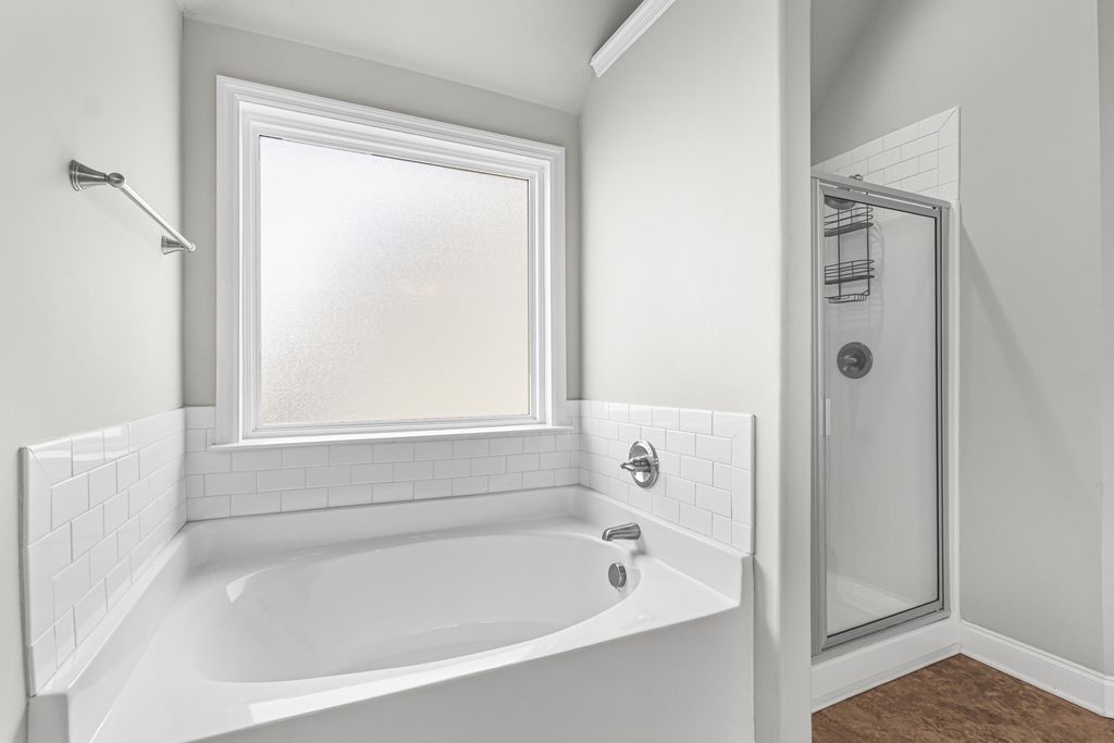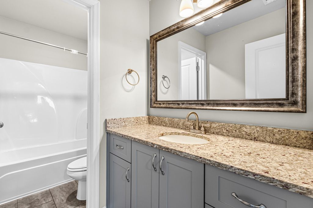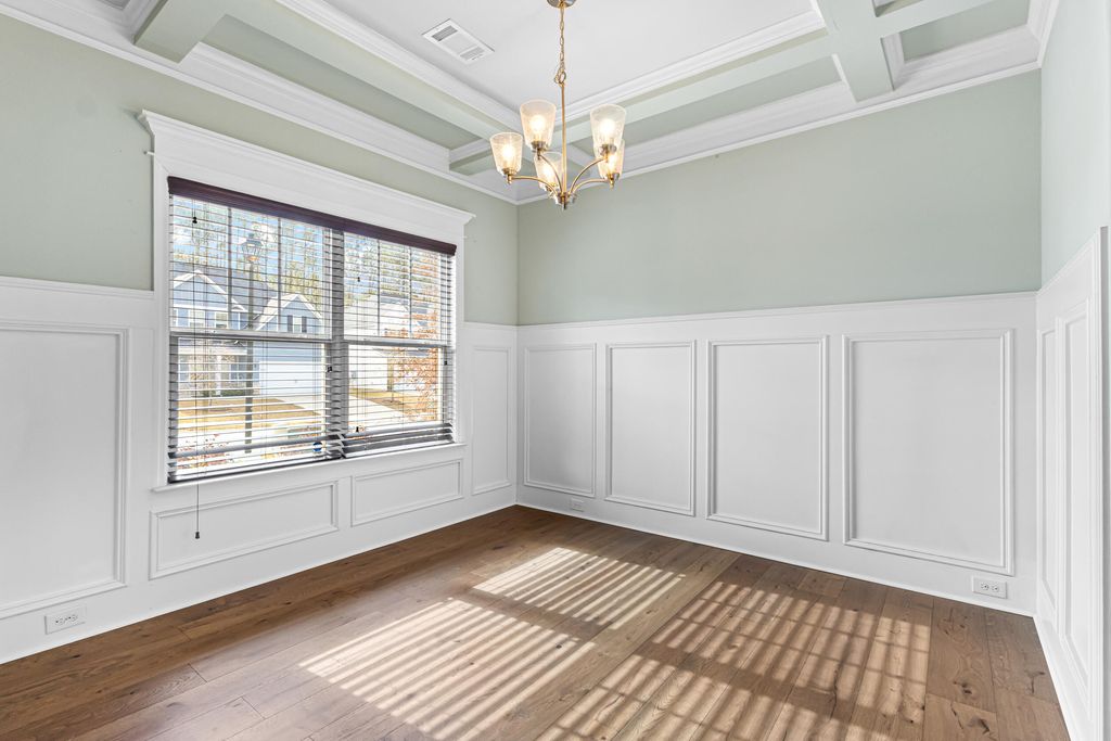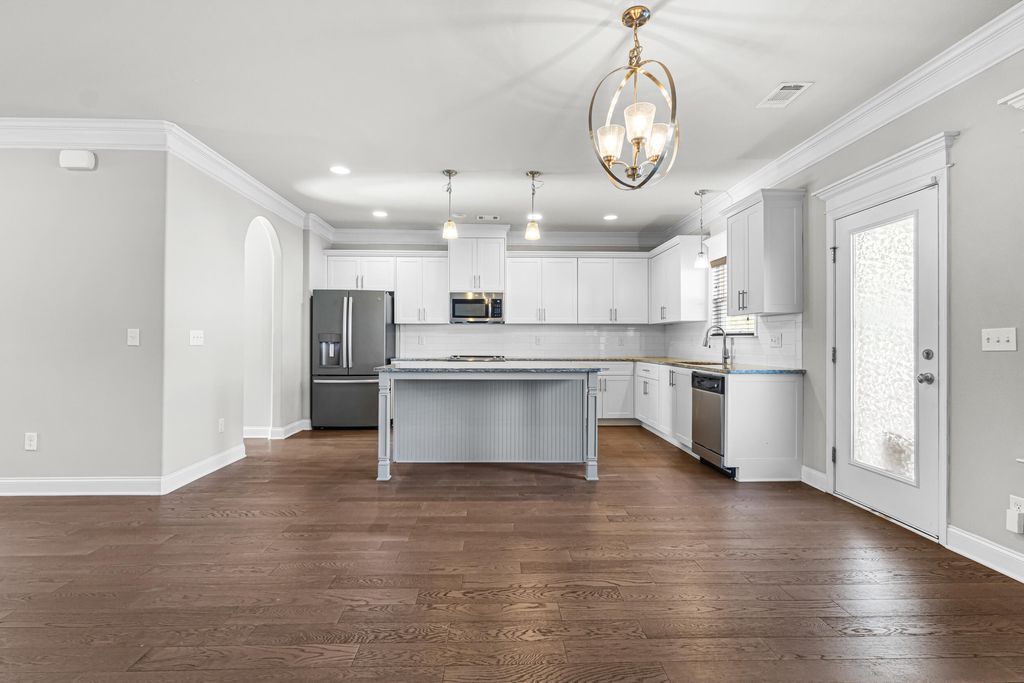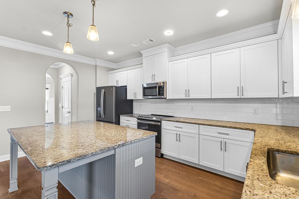 Excellent, move-in ready home in sought after Canterbury Farms! This 4 Bedrooms, 2.5 Bath home has what you have been looking for this Holiday Season! This home offer beautiful engineered flooring throughout the downstairs/living areas. The open kitchen boasts stainless steel appliances, granite countertops, huge island, double door pantry, and eat-in kitchen area. Large living room with coffered ceiling, stacked stone fireplace and shiplap wall. The spacious owner's suite offers a walk-in-closet, plus private bath with a soaking tub and separate shower. Other features include: blinds throughout, formal dining room also with coffered ceiling, covered back patio, privacy fenced back yard and 2 car garage.