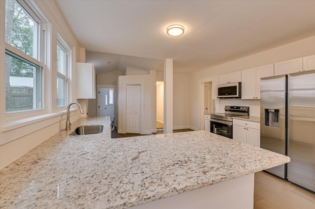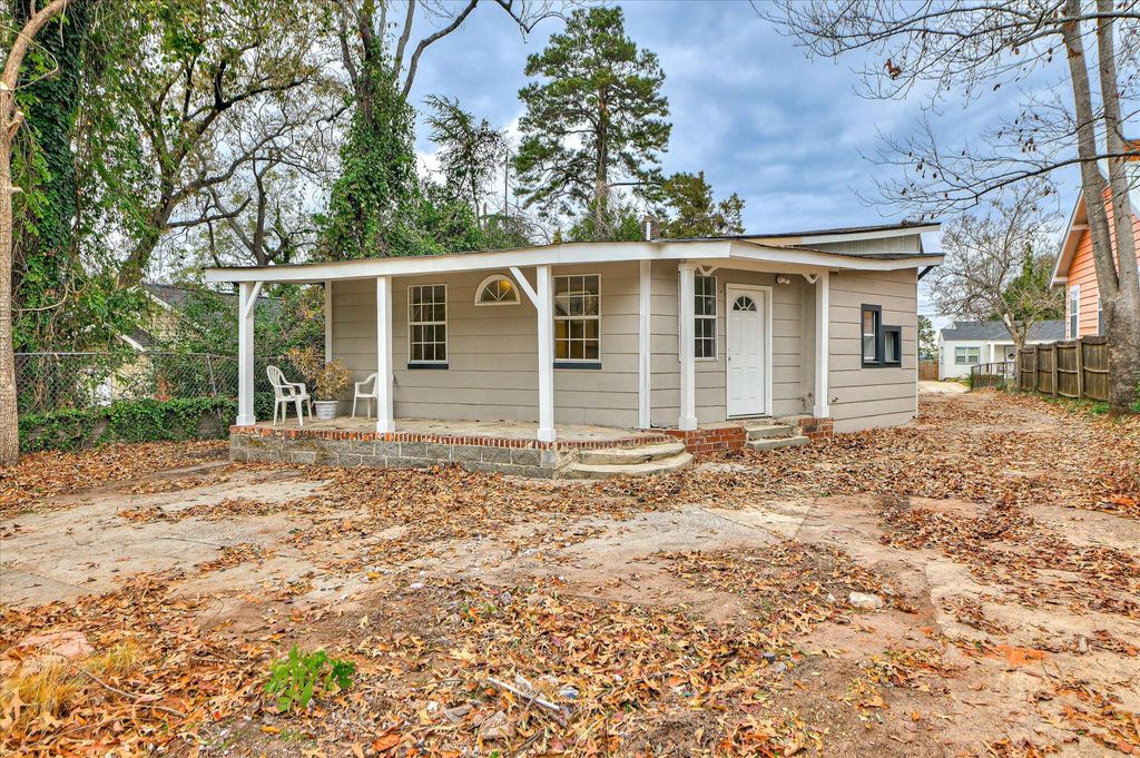Charming and beautifully updated 1930s bungalow in the Heart of Augusta, Georgia. Close to Surrey Center, The Augusta Medical District, and the Augusta National Golf Club. This versatile layout includes 3 bedrooms and 2 bathrooms in the main home, plus an additional dwelling unit with its own exterior entrance, ideal for separate living quarters, a guest suite, multigenerational use, or pad split or income production. Recent updates include a new roof, HVAC, granite countertops, cabinets, vanities, appliances, fixtures, interior and exterior paint, and laminate flooring. While updated with modern finishes, this home still retains elements of its historic charm. The open concept living room, kitchen, and dining area greets guests upon entry. Ample windows bring in natural light, and a fireplace creates a warm focal point in the main living space. Just off the living area is the primary bedroom with a walk-in closet and an ensuite bathroom featuring a low entry shower. The hallway off the dining room leads to an office, two additional bedrooms, a linen closet, and a second full bathroom with a tub/shower combo. The updated kitchen offers a pantry, granite countertops with bar seating, and brand-new stainless-steel appliances including an electric range, microwave, dishwasher, deep sink, and double-door refrigerator. Behind the kitchen is the main laundry room with washer/dryer hookups, and exterior access to the driveway and yard. The additional dwelling unit, accessible from the main kitchen, offers a versatile space including a laundry area, pantry, kitchenette with sink and countertop, and full bathroom. The suite has its own split-unit HVAC system and a private exterior entrance to the back yard, perfect for guests or roommates. Outside, enjoy a brand new and welcoming deck just off the Owner's suite and a covered rear patio with partially fenced yard along with ample driveway and parking space. This central location offers easy access to Augusta's midtown amenities, including restaurants and coffee shops, and is convenient to the VA Medical Center, Piedmont Summerville Campus, Augusta University, the Medical District, and Fort Eisenhower. Don't miss this beautifully updated home.