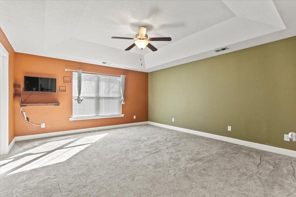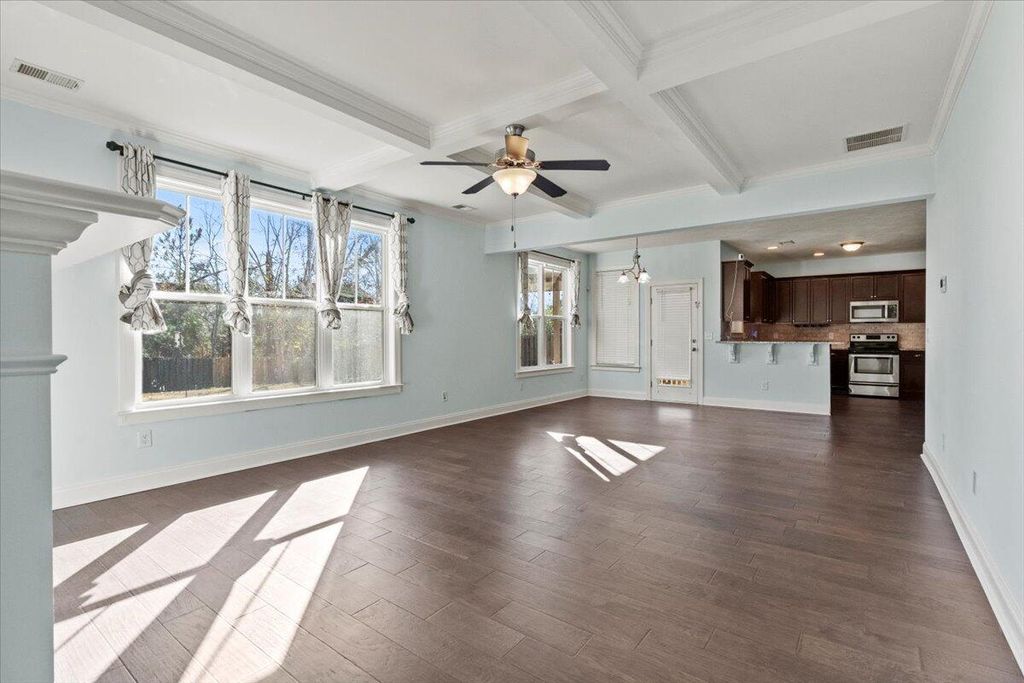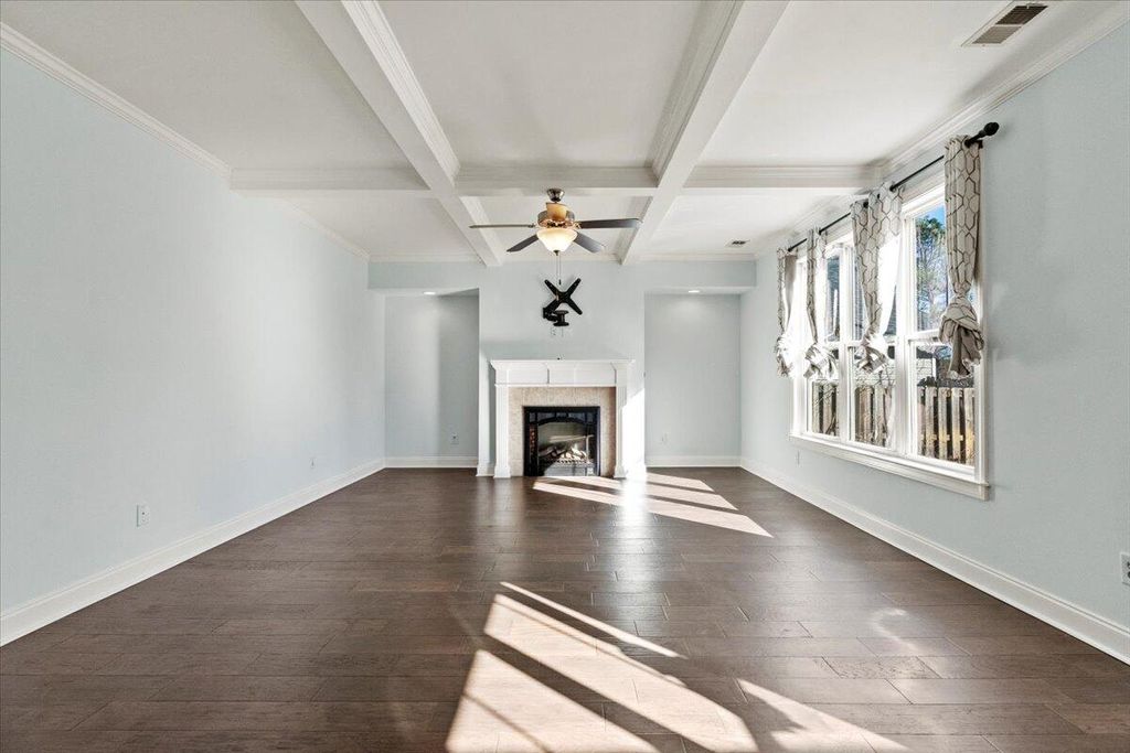 Imagine coming home to comfort and convenience! This beautifully appointed 4-bedroom, 3-bathroom residence is designed for modern living and entertaining. The heart of the home is a spectacular open-concept design, featuring a bright great room with a stately coffered ceiling and fireplace, connecting perfectly to the chef's kitchen. The kitchen is a dream with extensive stained cabinets, granite countertops, under-counter lighting, and a full suite of appliances. Upstairs offers a peaceful retreat, featuring all new carpet, generously sized bedrooms, and the convenience of an upstairs laundry room. The Owners' Suite is a true sanctuary with double closets and a spa-like bath including a garden tub and separate shower. But the real magic is outside: Choose between relaxing on the screened porch, entertaining on the covered porch with ceiling fans, or gathering loved ones around the fire pit for unforgettable cool evenings. Located in a sought-after family neighborhood with miles of trails and bike paths. Low-maintenance and ready for you"”don't miss this one!