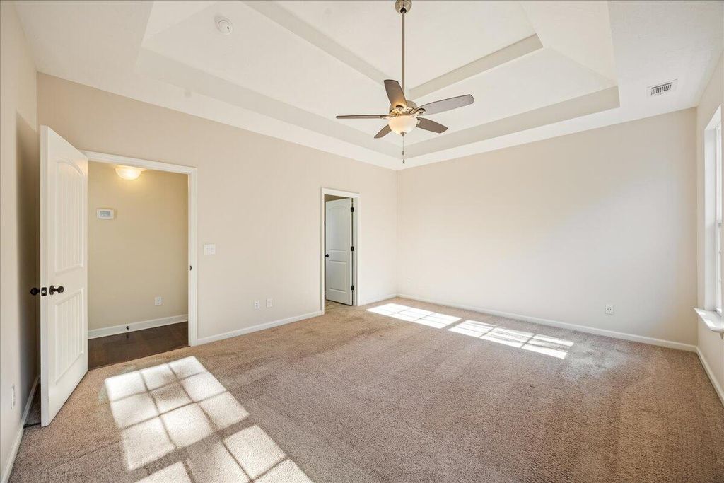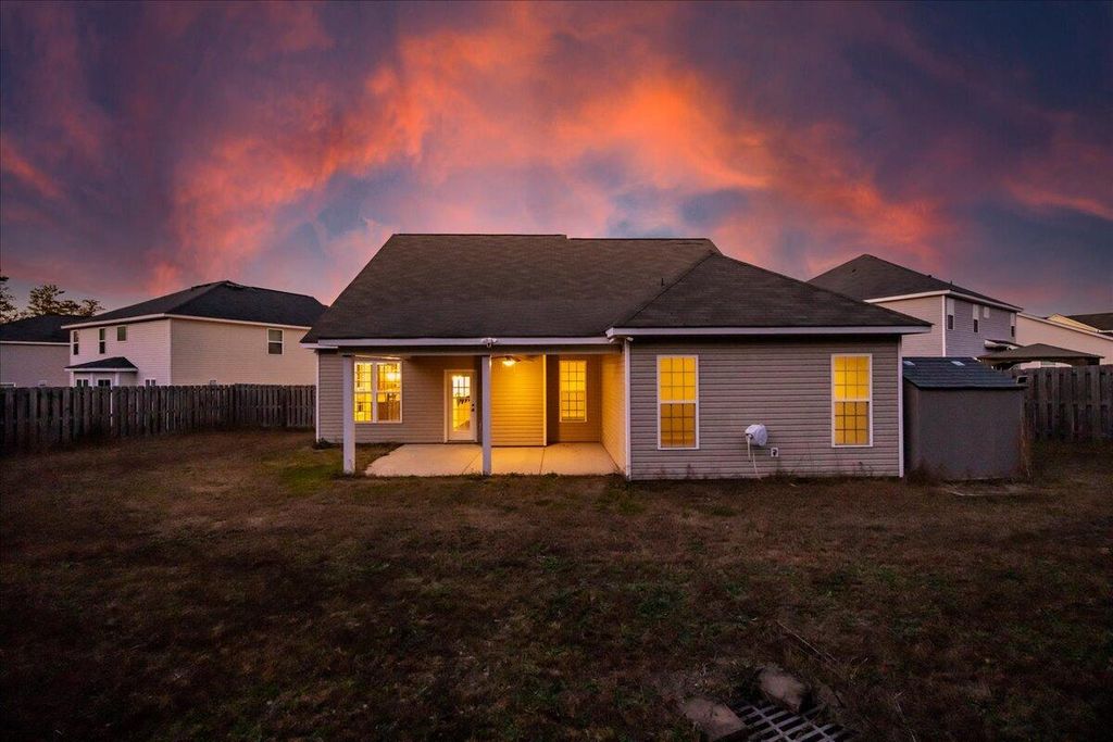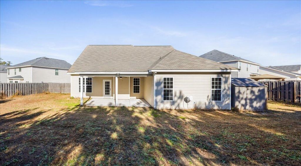 Welcome home to Hayne's Station, one of Grovetown's most sought-after communities, where thoughtful design meets everyday convenience. This Lockwood plan by Bill Beazley Homes offers a highly desirable layout with the primary suite on the main level, featuring a private bath with double vanities, a walk-in closet, separate shower, and garden tub, creating a relaxing retreat at the end of the day. The main level is designed for both function and flow, showcasing an open-concept living area and a spacious kitchen with granite countertops, stainless steel appliances, a large island with sink, breakfast bar, and walk-in pantry, plus a light-filled breakfast nook overlooking the backyard. Just off the foyer, the formal dining room provides wonderful flexibility and can easily serve as a home office, playroom, or craft area to suit your lifestyle. A main-level laundry room, mud bench with hooks, and a convenient half bath complete the first floor. Upstairs, you'll find three generously sized bedrooms and a full bath with double vanities, offering plenty of space for family, guests, or additional work-from-home needs. Fresh interior paint gives the home a clean, move-in-ready feel throughout. Step outside to enjoy a large covered outdoor patio complete with a ceiling fan, ideal for relaxing or entertaining year-round. The privacy-fenced backyard also includes a sizable shed, perfect for storing lawn equipment, tools, bikes, and outdoor toys. Enjoy the neighborhood amenities, including a resort-style community pool and pavilion, perfect for warm Georgia days. As an EarthCents home, this property offers lower energy bills, saving an estimated 300 to 500 annually, consistent temperatures between rooms, and improved indoor air quality. Conveniently located near shopping, dining, Fort Gordon, I-20, I-520, the Medical District, and Clarks Hill Lake, Hayne's Station delivers low-maintenance living in an unbeatable location. Schedule your showing today and start enjoying the Hayne's Station lifestyle.