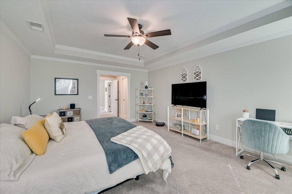 Welcome home to 328 Granard Street in the highly sought-after Canterbury Farms community. Built in 2021 and meticulously maintained, this like-new 4-bedroom, 3.5-bath home offers over 3,000 square feet of thoughtfully designed living space with the flexibility today's buyers are looking for. The main level features an open, inviting layout anchored by a spacious kitchen with a large island, abundant cabinetry, and seamless flow into the great room and dining area. Shiplap accents and detailed moldings add character and warmth, while the sunroom provides the perfect place to relax or entertain year-round. A dedicated home office, mudroom, and breakfast area enhance everyday functionality. Upstairs, all four bedrooms are generously sized, including a spacious primary suite with large walk-in closets and a well-appointed bath. Storage is plentiful throughout the home, making daily living effortless. Outside, enjoy a privacy-fenced backyard overlooking green space, offering both seclusion and a peaceful setting. Additional improvements include gutters, professional landscaping, and a move-in-ready condition that truly sets this home apart. Canterbury Farms offers sidewalks, streetlights, playgrounds, and direct access to the Euchee Creek Greenway, all while being conveniently located near Fort Eisenhower, shopping, dining, and top-rated Columbia County schools. Very clean, well maintained, and ready for its next owner. Schedule your showing today.