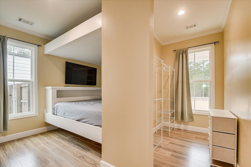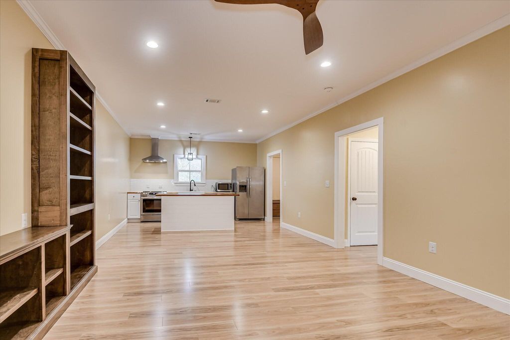 Stunning New Construction on 3.29 Acres in the Heart of Harlem! Built in 2024, this beautifully designed ranch-style home offers the perfect blend of modern comfort and peaceful outdoor living. Situated on a spacious 3.29-acre lot featuring a charming spring-fed pond, this property provides privacy while still being close to everything Harlem has to offer. Inside, you'll find an open-concept living space with durable LVP flooring throughout. The living room flows seamlessly into the kitchen and features custom built-ins, creating a warm and inviting atmosphere. The kitchen is a standout with an island, backsplash, stainless steel appliances, farm-style sink, and a walk-in pantry"”perfect for both everyday living and entertaining. The thoughtfully designed split floor plan offers two bedrooms on one side of the home, including one with a private en-suite bath and another conveniently located near a full hall bath. On the opposite side, the private owner's suite provides a relaxing retreat, complete with a spacious bathroom and walk-in shower. Additional features include a dedicated laundry room, a welcoming rocking-chair front porch, a tin roof, fenced-in backyard, and a large covered back porch ideal for enjoying the outdoors. Storage and workspace abound with a massive 100' x 30' outbuilding featuring a roll-up door, built-in work benches, floored walk-up storage space, and a separate room that could serve as an office or extra bedroom. This exceptional property combines modern new construction with acreage, functionality, and charm"”an opportunity you won't want to miss.